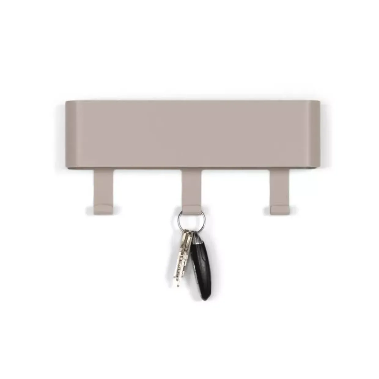 Taupefarbene Eleganz trifft auf funktionales Design: Der Multi 3 begeistert als vielseitige Garderobe. Mit seiner eckigen Form fügt er sich harmonisch in verschiedene Wohnbereiche ein, sei es im Flur, in der Küche oder im Badezimmer. Gefertigt aus robustem Stahl und mit einer pulverbeschichteten Oberfläche versehen, vereint der Multi 3 Langlebigkeit mit modernem Stil.Drei Haken bieten praktischen Stauraum für Jacken, Handtücher oder Küchenutensilien, während die obere Ablage ideal für Schlüssel und andere Kleinigkeiten ist. Die Garderobe zeichnet sich durch ihre bruchsicheren, farbechten und feuerbeständigen Eigenschaften aus. Sie bleibt formbeständig und ist zudem korrosionsbeständig, was ihre Einsatzmöglichkeiten erweitert.Besonders hervorzuheben ist die nachhaltige Komponente: Der Multi 3 ist aus recyceltem Material gefertigt. Die Pflege gestaltet sich unkompliziert, ein einfaches feuchtes Abwischen genügt, um seine Oberfläche zu reinigen und zu pflegen.Diese Garderobe ist nicht nur funktional, sondern auch ein stilvolles Accessoire für Ihr Zuhause. Die Kombination aus hochwertigem Metall und durchdachtem Design macht sie zu einem unverzichtbaren Helfer im Alltag und zu einem Blickfang in jedem Raum.