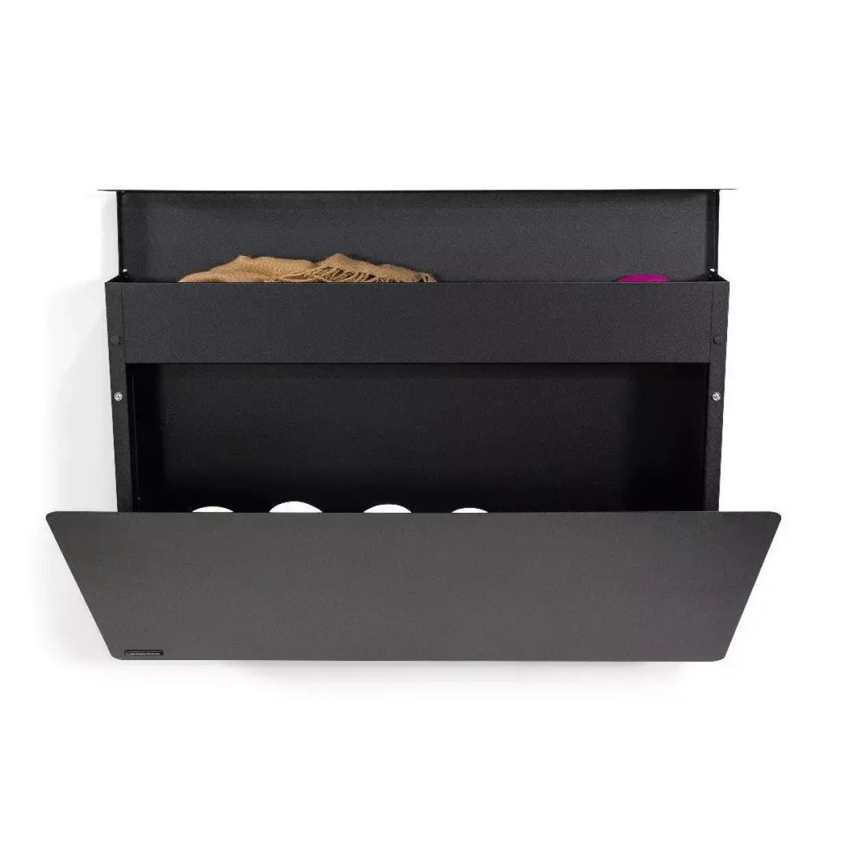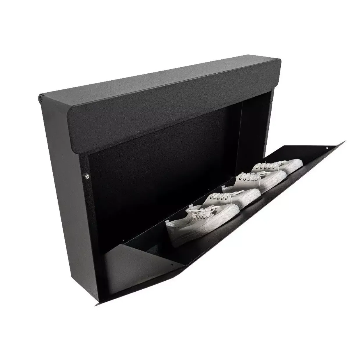 Ein eckiges Design trifft auf raffinierte Funktionalität – der Schuhschrank Luigi setzt neue Maßstäbe in der Flurorganisation. Gefertigt aus pulverbeschichtetem Stahl, verbindet Luigi Robustheit mit zeitlosem Stil. Die Farbe Schwarz verleiht ihm eine elegante Note, die in jedem Eingangsbereich ein Highlight setzt. Der Schuhschrank bietet Platz für drei bis vier Paar Schuhe, abhängig von deren Anordnung, und sorgt so für eine aufgeräumte Umgebung.Besonders hervorzuheben ist das versteckte Aufbewahrungsfach, das praktische Ordnung für Handschuhe, Schlüssel und Accessoires schafft. So bleibt alles Wichtige stets griffbereit und dennoch aus dem Sichtfeld. Die bruchsichere und farbechte Oberfläche garantiert eine langanhaltende Nutzung ohne Abstriche an der Ästhetik. Zudem ist Luigi feuerbeständig, formstabil und korrosionsbeständig – Eigenschaften, die für ein langlebiges Produkt stehen.Auch der Umweltaspekt kommt nicht zu kurz: Die Verwendung von recyceltem Material unterstreicht einen nachhaltigen Ansatz. Zur Pflege genügt es, die Oberfläche feucht abzuwischen, um den Schuhschrank in seinem besten Zustand zu erhalten. Luigi ist die perfekte Wahl für alle, die Ordnung und Stil in ihrem Flur vereinen möchten.