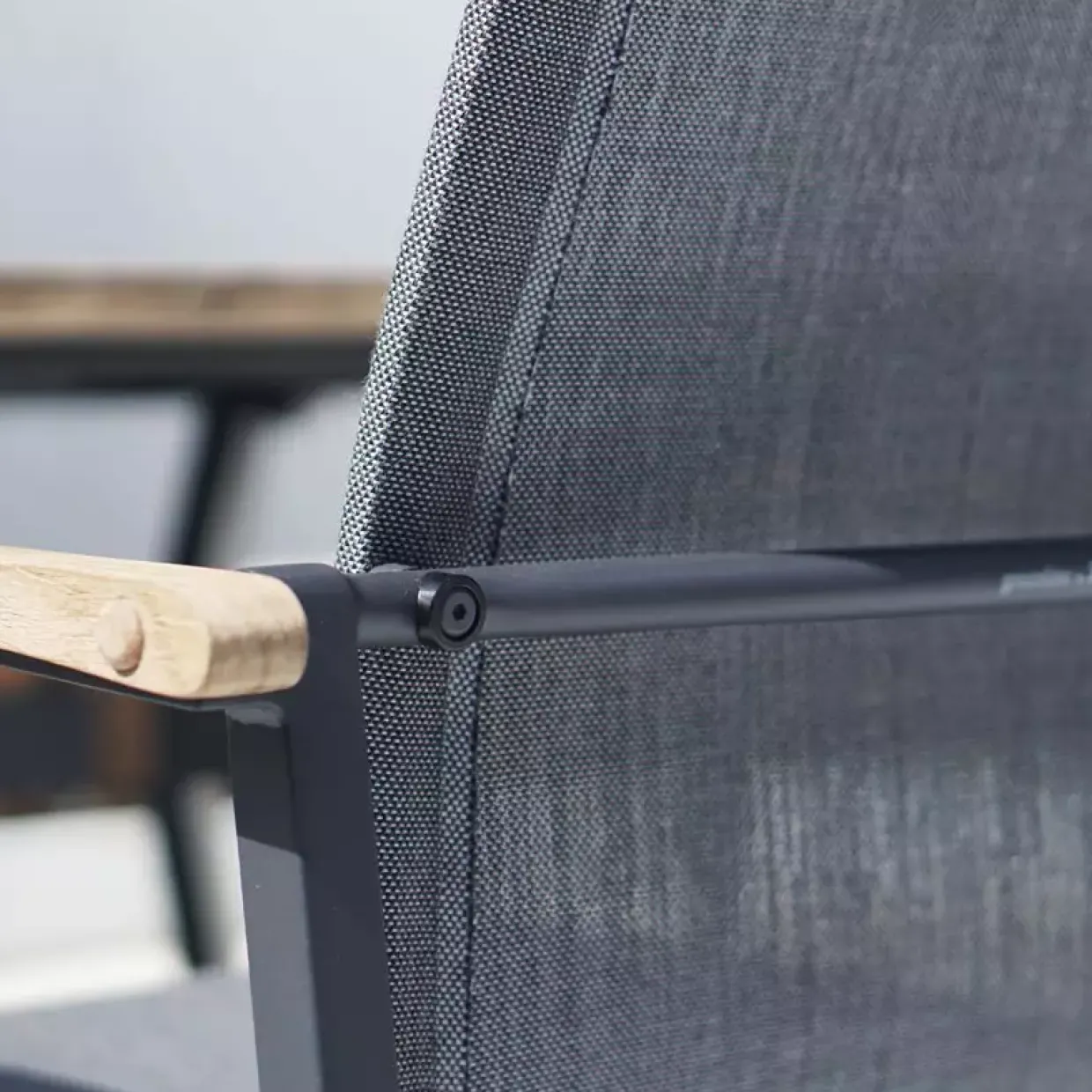 Der Felix Sessel besticht durch seinen modernen Stil und fügt sich nahtlos in jedes zeitgenössische Interieur ein. Mit seiner eleganten Farbpalette in Midnight Grey und Graphit verleiht er jedem Raum eine dezente, aber stilvolle Note. Die robuste Konstruktion kombiniert Textil und Metall, wobei das Aluminium-Fußgestell für Stabilität und Langlebigkeit sorgt.