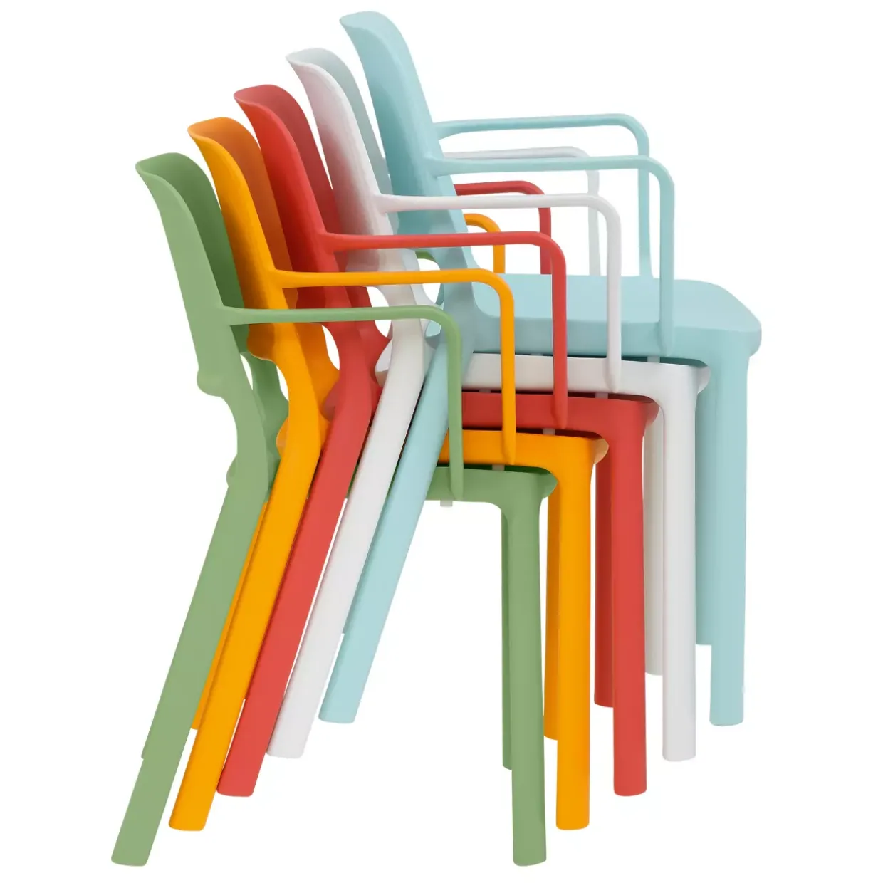 100% Polypropylen, UV- und wetterbeständig, outdoorgeeignet, stapelbar (bis zu 5 Stühle), Sitzhöhe 46 cm. Mindestbestellmenge 2 Stück.