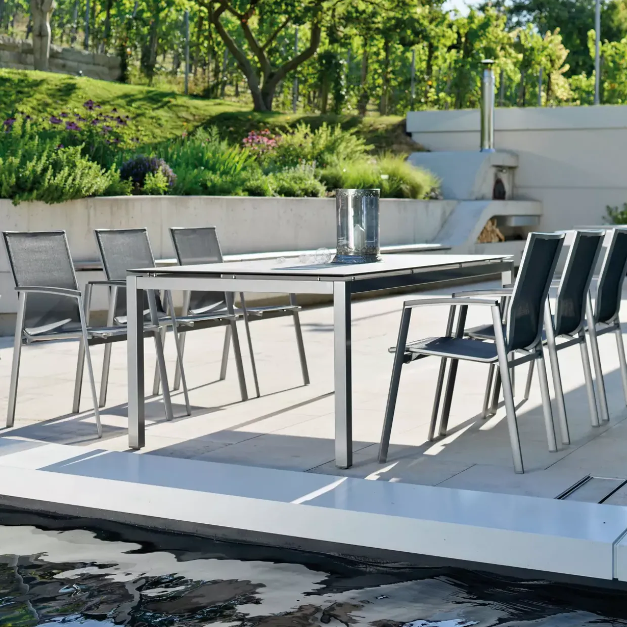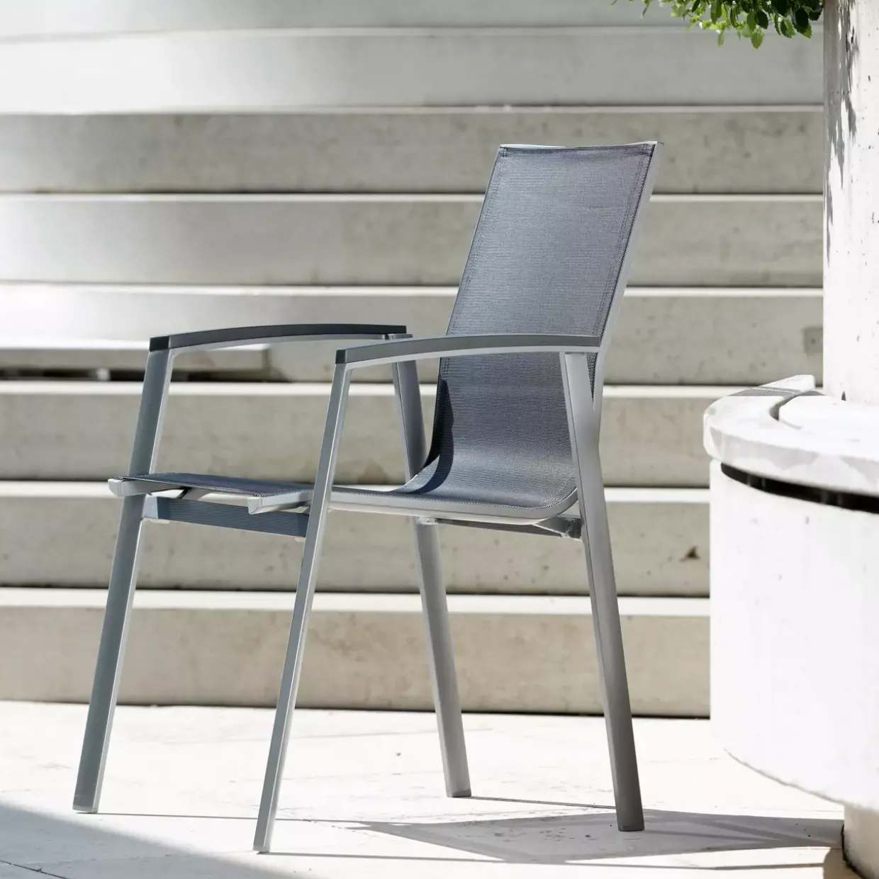 Silbergrau und Graphit sind die Farben, die den modernen Charakter des Stapelstuhls New Top unterstreichen. In jedem Raum fügt er sich elegant ein und bietet gleichzeitig einen Hauch von Raffinesse. Die Kombination aus robustem Metall und hochwertigem Textil verleiht dem Stuhl nicht nur Stabilität, sondern auch Komfort. Der New Top ist nicht nur ein Blickfang, sondern überzeugt ebenso durch seine Funktionalität.