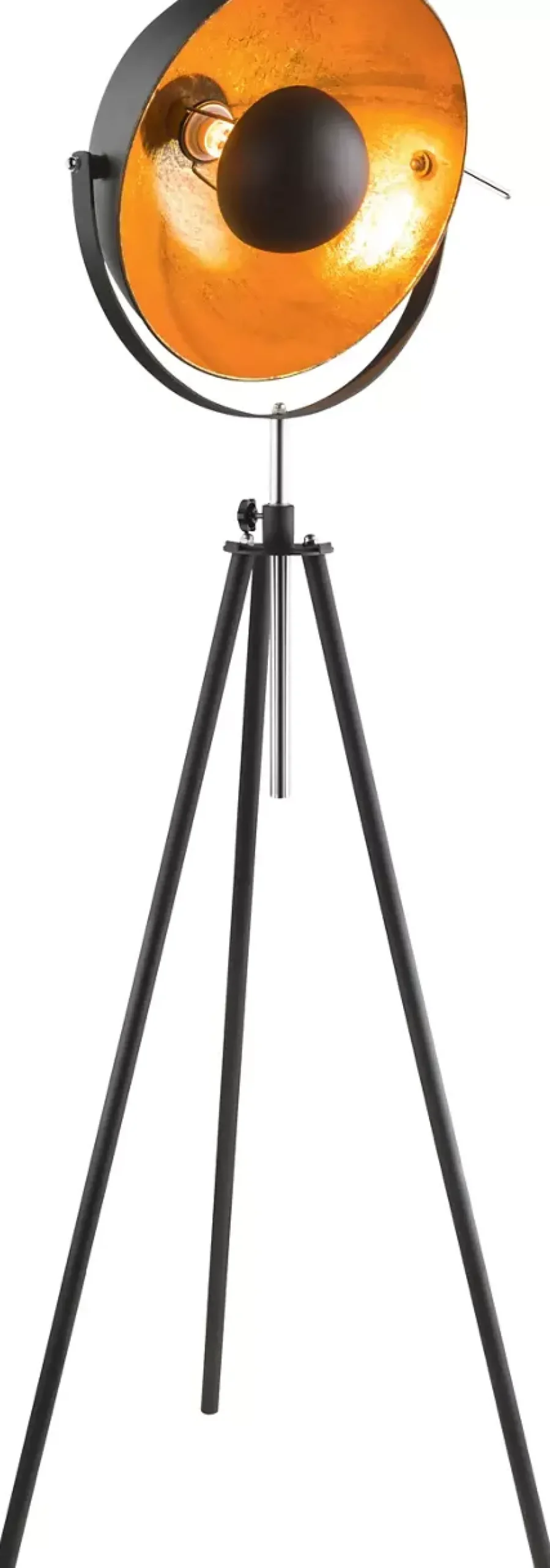 Stehleuchte Metall schwarz, goldfarben, Fußtrittschalter im Kabel, Höhenverstellbar, Dreh-/Schwenkbar, ø: 690mm, H: 1790mm, Kabellänge 1800mm, exkl. 1x E27 60W 230V