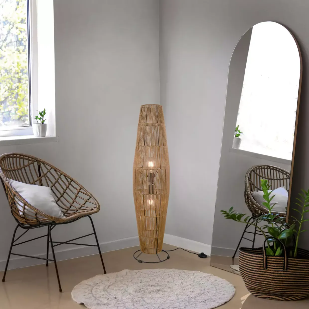 Die MIKI Stehleuchte ist nicht nur ein dekoratives Element, sondern auch ein funktionaler Deckenfluter, der für eine angenehme und gleichmäßige Ausleuchtung sorgt. Ihr minimalistisches Design und das natürliche Material machen sie zu einem vielseitigen Begleiter in jedem Raum. Ob als stimmungsvolle Hintergrundbeleuchtung oder als Hauptlichtquelle – diese Leuchte erfüllt all Ihre Bedürfnisse stilvoll und effizient. Verleihen Sie Ihrem Zuhause mit der MIKI Stehleuchte einen Hauch von Boho-Chic und genießen Sie das perfekte Zusammenspiel von Form und Funktion.