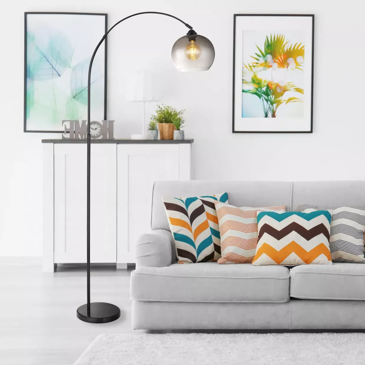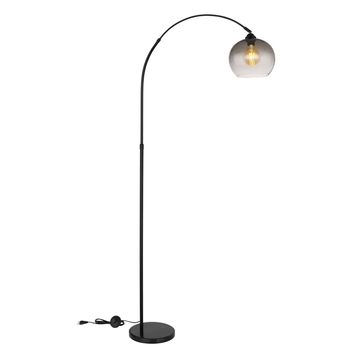 Rauchglas verleiht dieser stilvollen Stehleuchte eine elegante Note, die in jedem Raum Akzente setzt. Die Kombination aus Glas, Metall und Stein verspricht eine harmonische Verbindung von Materialien, die sowohl robust als auch ästhetisch ansprechend ist. Der schwarz matte Look sorgt für eine zeitlose Eleganz, die sich vielseitig in verschiedene Einrichtungsstile integrieren lässt.