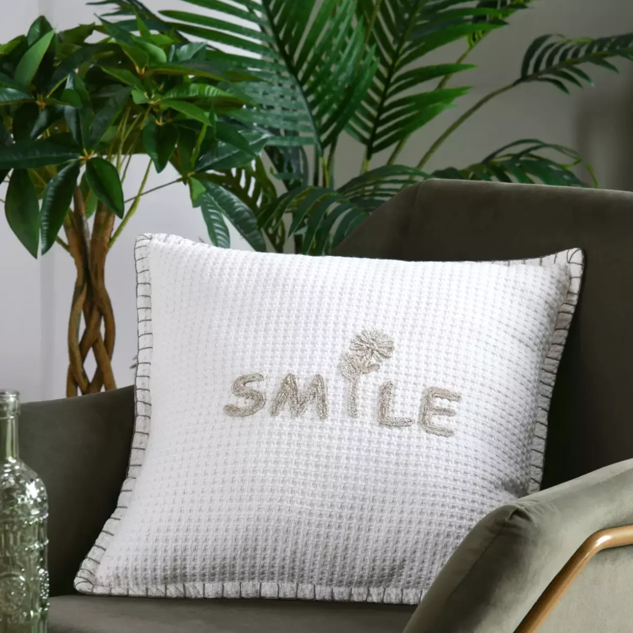 Ein Reißverschluss sorgt für eine einfache Handhabung, indem er das Wechseln und Reinigen der Kissenhülle erleichtert. Mit komfortablen Abmessungen von 45 x 45 cm fügt sich dieses Kissen nahtlos in verschiedene Wohnumgebungen ein, sei es als Dekorationselement auf dem Sofa oder als zusätzlicher Komfort auf dem Bett.