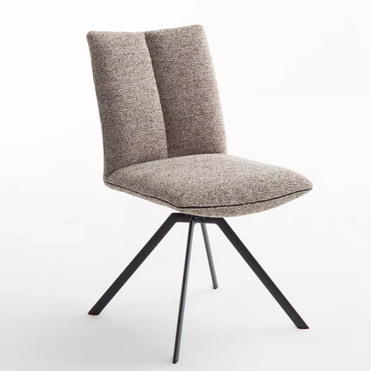 Ein Höchstmaß an Komfort bietet die Drehschwingfunktion, die Ihnen eine flexible Sitzposition ermöglicht. Der Stuhl ist aus einer hochwertigen Kombination von Stoff und Metall gefertigt, die sowohl Langlebigkeit als auch eine ansprechende Optik garantiert. Das Zusammenspiel dieser Materialien schafft eine perfekte Balance zwischen Stabilität und Eleganz.