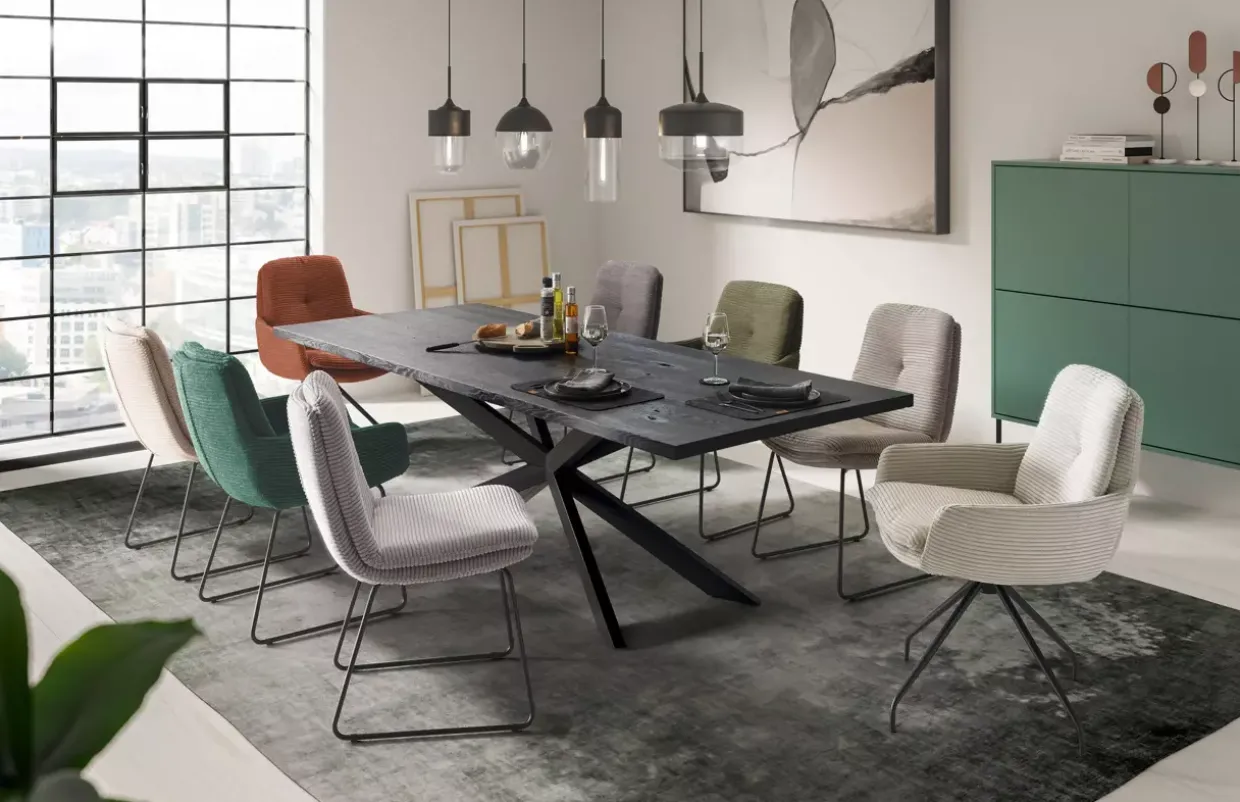 Das Material aus Cord verleiht dem Stuhl eine besondere Haptik und hebt ihn von anderen Modellen ab. In den Farben Taupe und Schwarz erhältlich, fügt sich der Stuhl harmonisch in verschiedene Raumkonzepte ein und bietet eine stilvolle Ergänzung für Esszimmer oder Büro.