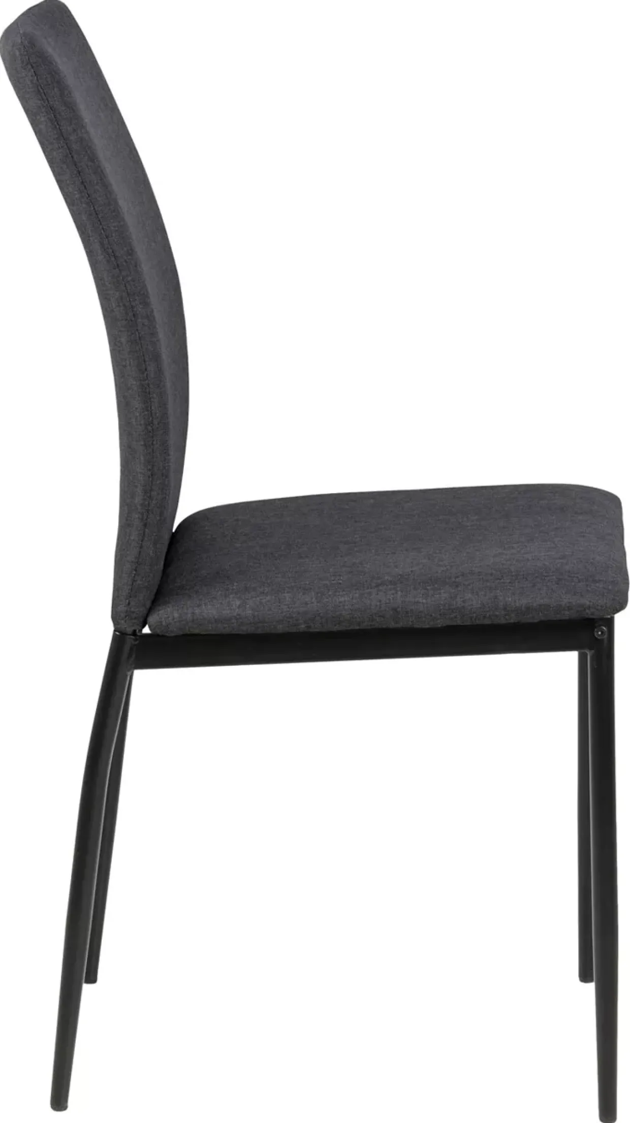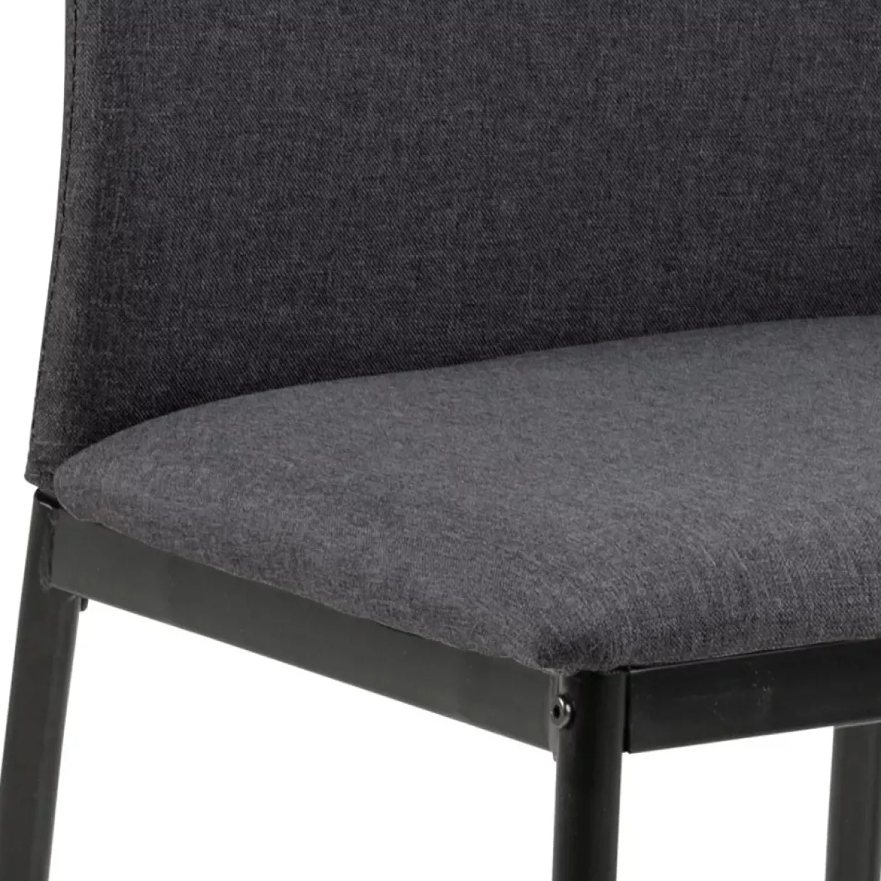 Darüber hinaus bietet der Stoffbezug eine einladende Haptik, die zum Verweilen einlädt, sei es beim Dinner mit Freunden oder einem gemütlichen Frühstück. Die Farbgebung in Grau und Schwarz ermöglicht eine vielseitige Integration in bestehende Dekore, ohne aufdringlich zu wirken.