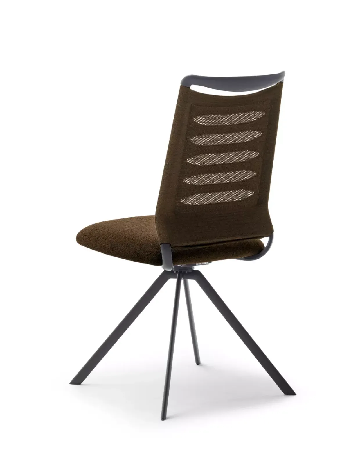 Dank seines drehbaren Designs bietet der Stuhl nicht nur Komfort, sondern auch Flexibilität bei der Nutzung. Die Fußform im 4-Fußgestell sorgt für Stabilität und Sicherheit, während die anthrazitfarbene Farbgebung der Füße elegant mit der restlichen Gestaltung harmoniert.