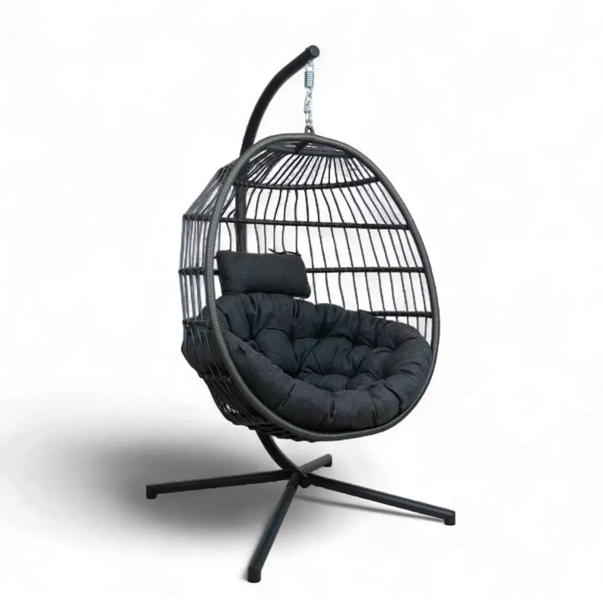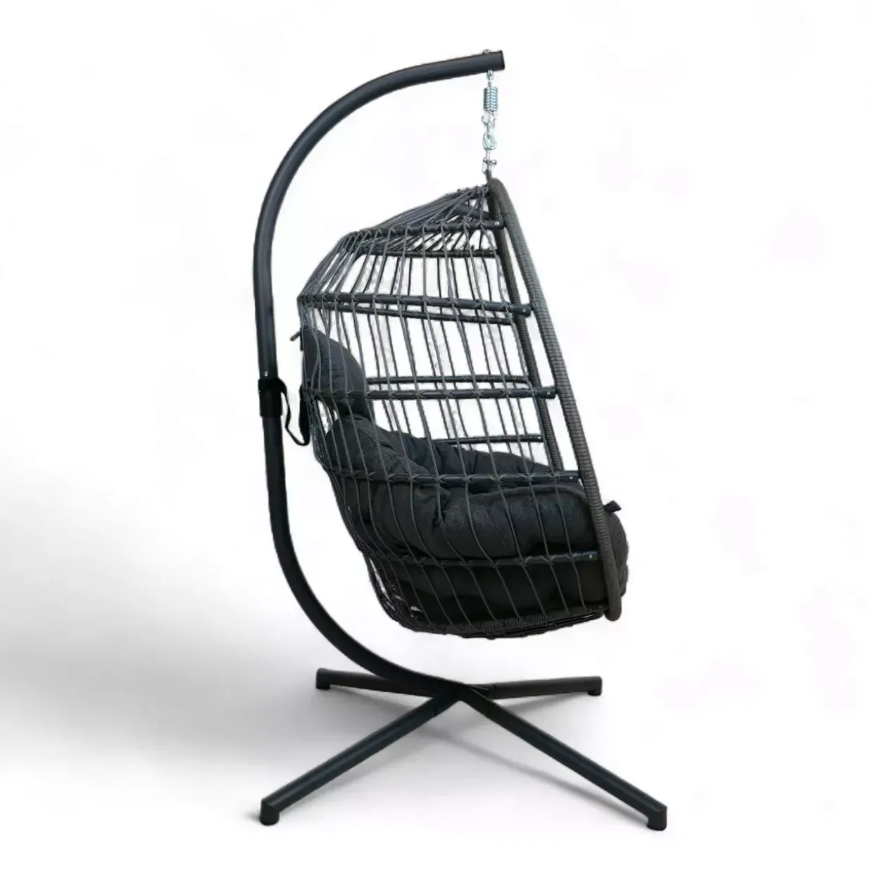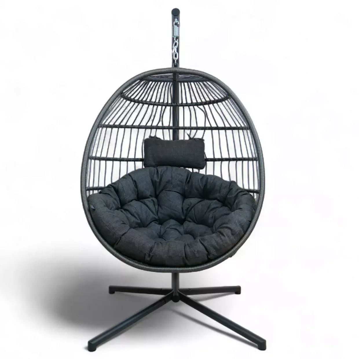 Ein Hauch von Modernität in Anthrazit: Der Hängesessel Folt Meran begeistert mit seinem stilvollen Design und der zeitgemäßen Ästhetik. Aus robustem Aluminium gefertigt, ist er sowohl langlebig als auch leicht, was durch die pulverbeschichtete Oberfläche zusätzlich verstärkt wird. Perfekt für den Sommer, bietet dieser Hängesessel dank seiner wetterbeständigen und UV-beständigen Materialien eine lange Lebensdauer im Außenbereich. Das Olefin-Gewebe sorgt für ein angenehmes Sitzgefühl, das selbst bei intensiver Sonneneinstrahlung nicht nachlässt. Die Knickfunktion verleiht dem Sessel eine zusätzliche Flexibilität, die es ermöglicht, ihn nach Ihren individuellen Bedürfnissen auszurichten.Die durchdachte Konstruktion mit einem 4-Fußgestell garantiert Stabilität und Sicherheit, während die Faltbarkeit des Sessels dafür sorgt, dass er bei Bedarf platzsparend verstaut werden kann. Diese Eigenschaften machen ihn zu einem idealen Begleiter für entspannte Tage im Freien.Einfach in der Pflege, lässt sich der Sessel mit lauwarmem Wasser und mildem Spülmittel mühelos reinigen. So bleibt er auch nach vielen Sommern ein stilvoller Hingucker in Ihrem Garten oder auf Ihrer Terrasse. Genießen Sie entspannte Stunden in einem Hängesessel, der Funktionalität und Ästhetik harmonisch vereint.