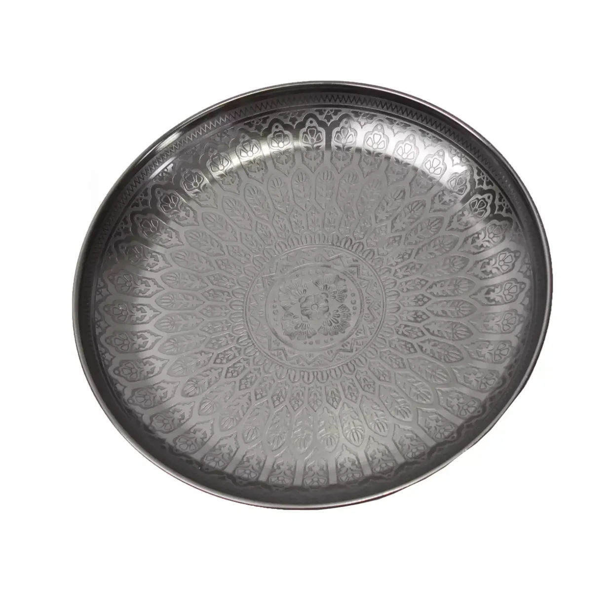 Die schlichte Formgebung lässt es sowohl in modernen als auch in orientalisch inspirierten Räumen zur Geltung kommen. Ein solches Tablett kann als dekorativer Mittelpunkt auf einem Tisch dienen oder als praktischer Helfer bei besonderen Anlässen. Die sorgfältige Verarbeitung und das ansprechende Design machen es zu einem unverzichtbaren Bestandteil jeder stilvollen Einrichtung.