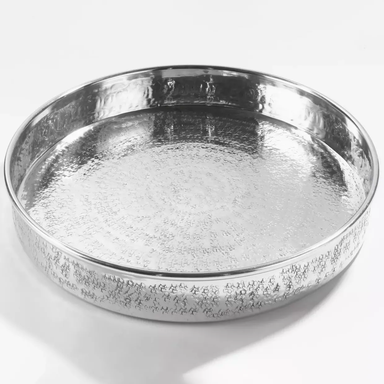 Mit einem großzügigen Durchmesser von 40 Zentimetern bietet das Tablett ausreichend Platz, um diverse Gegenstände stilvoll zu präsentieren. Ob als Serviertablett für besondere Anlässe oder als dekoratives Element auf einem Tisch – es ist vielseitig einsetzbar. Aluminium ist zudem bekannt für seine Korrosionsbeständigkeit, was die Pflege des Tabletts erleichtert und seine Langlebigkeit unterstützt.