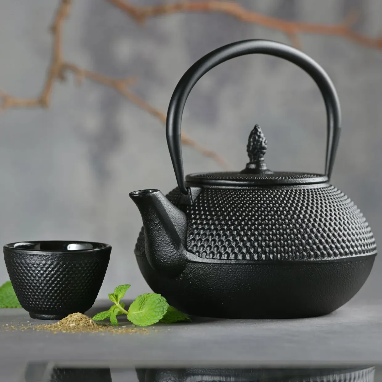 In elegantem Schwarz präsentiert sich die moderne Gusseisen-Teekanne, Modell 04851. Diese Teekanne vereint zeitgenössisches Design mit traditioneller Handwerkskunst und ist eine hervorragende Wahl für all jene, die Wert auf Ästhetik und Funktionalität legen. Gefertigt aus hochwertigem Gusseisen, verspricht sie nicht nur Langlebigkeit, sondern auch eine gleichmäßige Wärmeverteilung, die Ihr Tee-Erlebnis auf ein neues Niveau hebt.