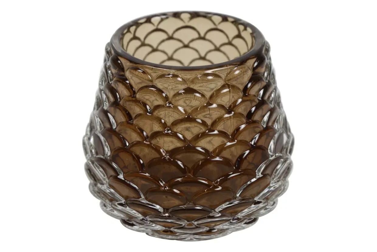 Die runde Form dieses Teelichthalters strahlt eine zeitlose Eleganz aus, die perfekt in jedes Zuhause passt. Ein Hauch von Retro-Stil verleiht dem Raum eine nostalgische Atmosphäre und lässt Erinnerungen an vergangene Zeiten aufleben. In einem warmen Braunton gehalten, fügt sich der Teelichthalter harmonisch in verschiedene Einrichtungsstile ein und schafft eine gemütliche und einladende Umgebung.