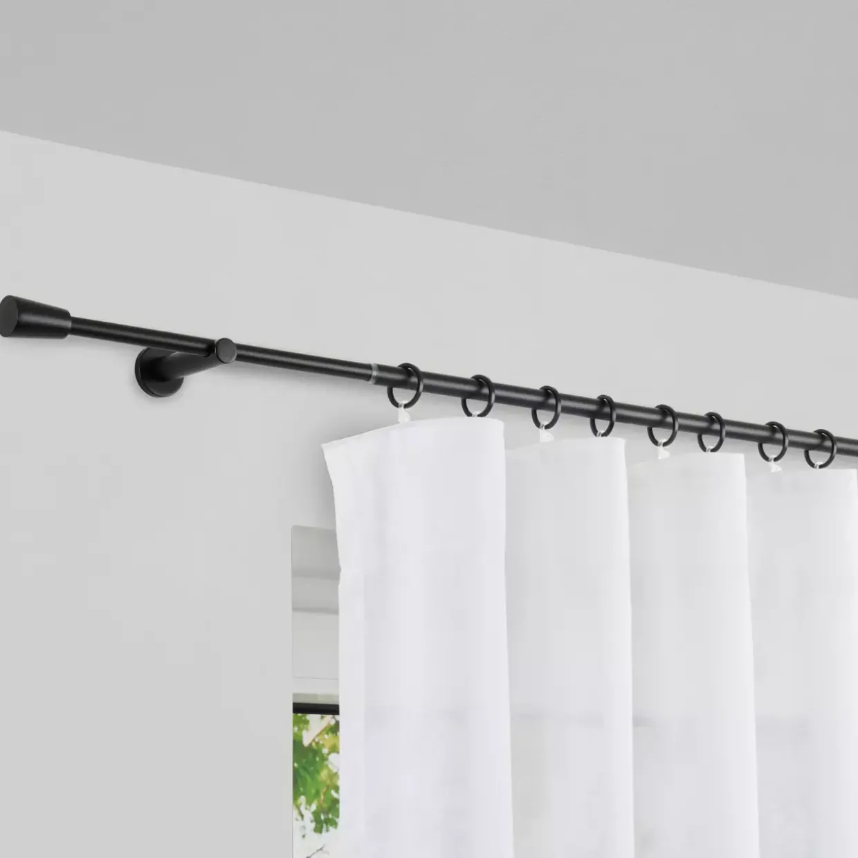 Schwarz, die zeitlose Eleganz, die in der modernen Einrichtung stets Eindruck hinterlässt. Die Teleskopgarnitur mino vereint diesen klassischen Farbton mit einem schlanken, zeitgemäßen Design. Aus robustem Metall gefertigt, bietet sie nicht nur Stabilität, sondern auch eine stilvolle Möglichkeit, Fensterdekorationen gekonnt in Szene zu setzen.