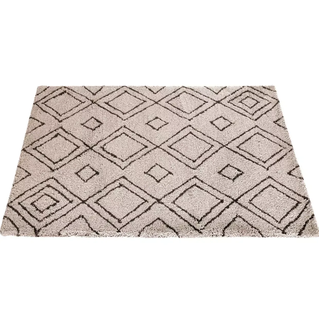Geometrische Muster verleihen diesem Teppich einen modernen Touch, der sich harmonisch in jedes stilvolle Zuhause einfügt. Die dezente Farbgebung in Beige und Schwarz sorgt für eine zeitlose Eleganz, die vielfältig kombinierbar ist. Eine Kombination aus Baumwolle und Polyester bietet nicht nur ein angenehmes Gefühl unter den Füßen, sondern auch eine robuste Qualität, die den täglichen Herausforderungen standhält.