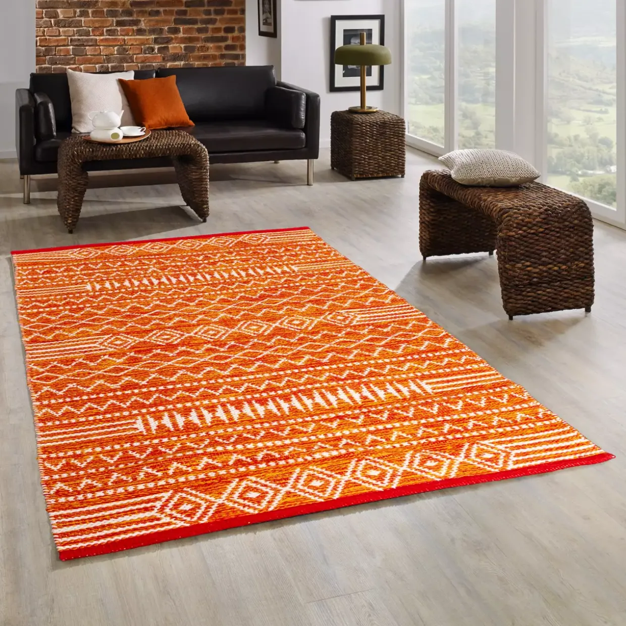 Ein Handwebteppich mit dem Modellnamen Roma begeistert durch seinen modernen Stil und seine bunte Farbigkeit. Die Kombination aus Baumwolle und Polyester verleiht dem Teppich eine angenehme Haptik und Langlebigkeit. Dabei punktet das Flachgewebe durch seine feine Struktur, die den Teppich robust und gleichzeitig edel wirken lässt.