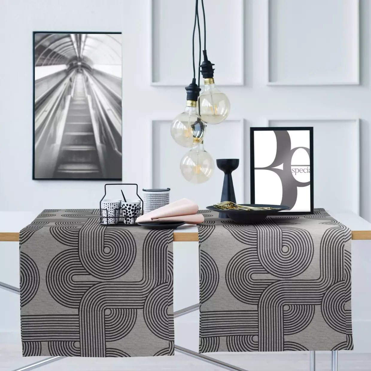 Das Modell Nova verleiht Ihrem Tisch mit seinem modernen Stil einen Hauch von Eleganz. In der Farbe Anthrazit gehalten, fügt sich der rechteckige Tischläufer harmonisch in jede Einrichtung ein. Die graphischen Muster setzen dabei stilvolle Akzente, die das Auge erfreuen. Ganzjährig einsetzbar, passt der Tischläufer sowohl zu festlichen Anlässen als auch zu alltäglichen Mahlzeiten.