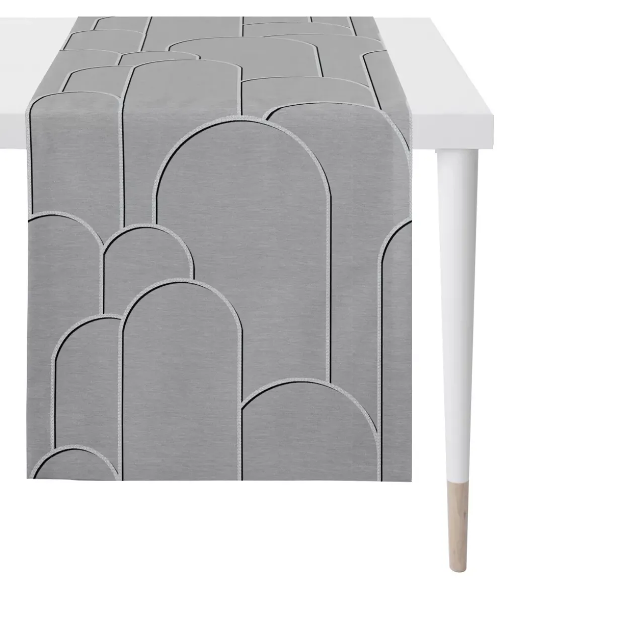 Der Tischläufer Vision besticht durch seine moderne, rechteckige Form und verleiht jedem Tisch ein stilvolles Ambiente. In einem zeitlosen Grauton gehalten, fügt sich das graphische Muster nahtlos in verschiedene Einrichtungsstile ein und setzt dennoch einen eleganten Akzent. Die hochwertige Synthetikfaser sorgt dafür, dass der Tischläufer nicht nur optisch überzeugt, sondern auch in Sachen Langlebigkeit punktet.