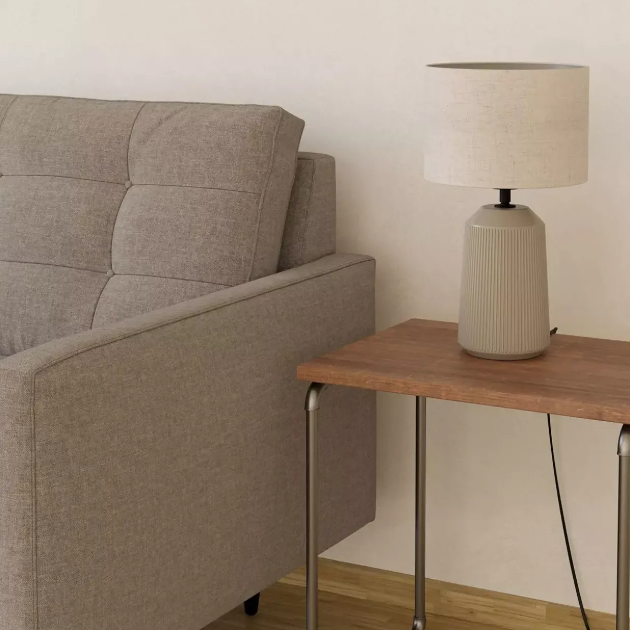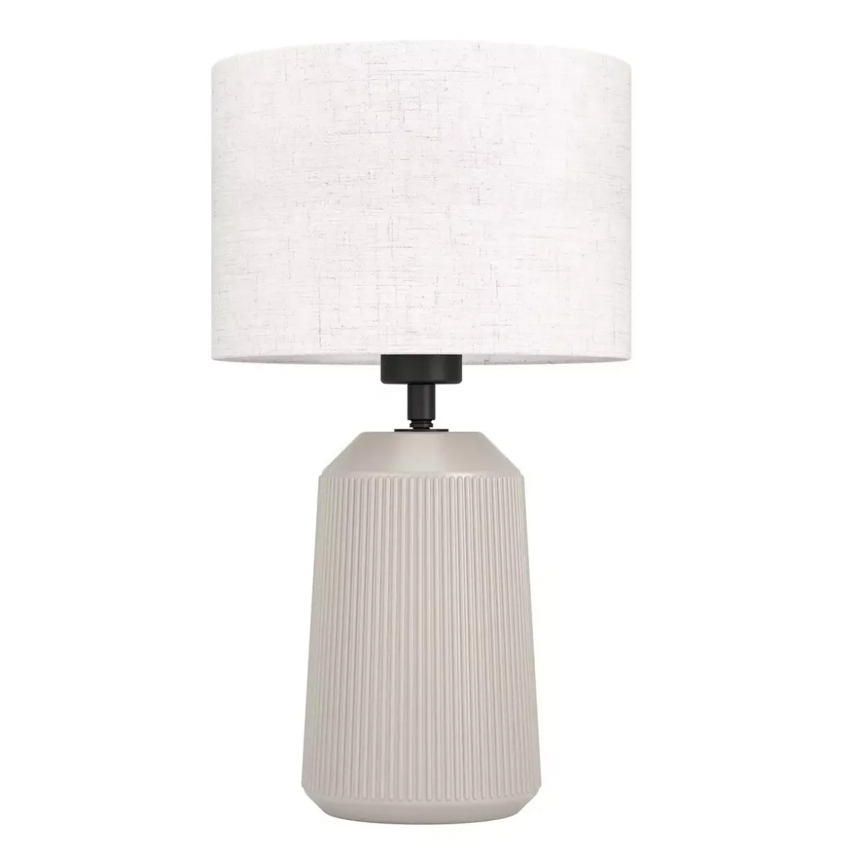 Tischleuchte; Keramik, sandfarben / Textil, weiss