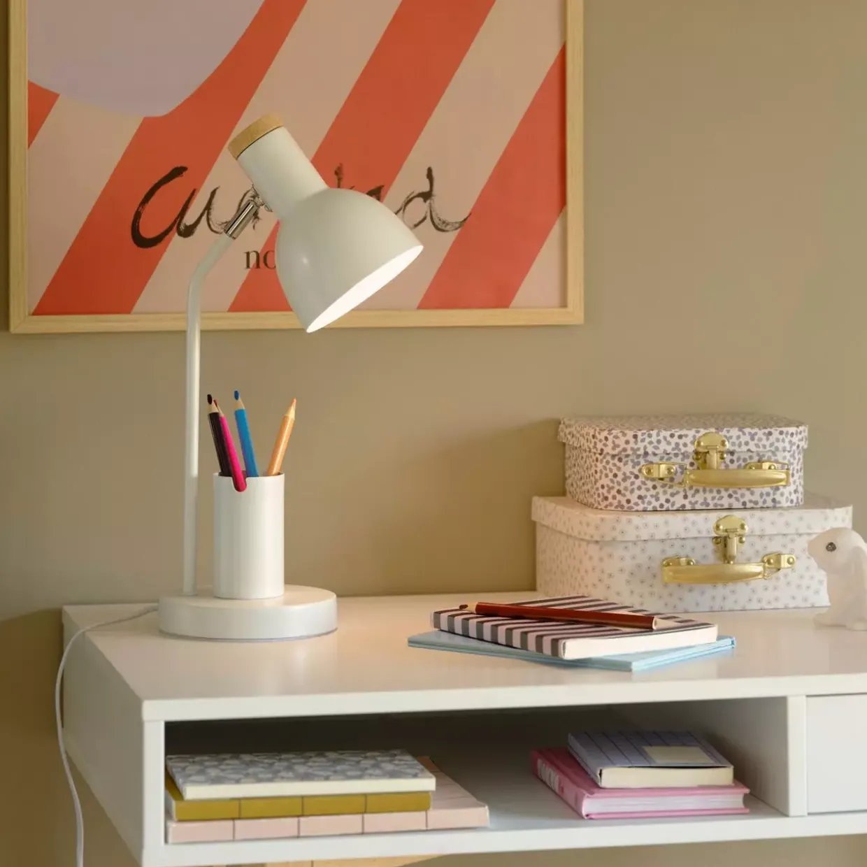 Ein Hauch von Modernität: Die Devone Tischleuchte vereint klare Linien und zeitloses Design. Die elegante weiße Farbe passt sich nahtlos in jedes Ambiente ein und sorgt für eine harmonische Atmosphäre. Dank der E27-Fassung haben Sie die Freiheit, das Leuchtmittel Ihrer Wahl zu verwenden und so die Lichtstimmung individuell anzupassen.