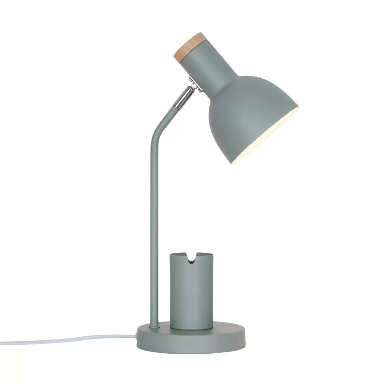 Ein Hauch von Modernität zieht mit der staubgrünen Devone Tischlampe in Ihr Zuhause ein. Diese elegante Beleuchtungslösung kombiniert gekonnt die Materialien Metall und Kunststoff, um eine langlebige und gleichzeitig stilvolle Ästhetik zu gewährleisten. Egal ob im Wohnzimmer, auf dem Nachttisch oder im Arbeitszimmer, die Devone Tischleuchte fügt sich harmonisch in verschiedenste Raumkonzepte ein.Die E27-Fassung bietet Ihnen die Möglichkeit, ein Leuchtmittel Ihrer Wahl zu integrieren, sodass Sie die Lichtintensität und -farbe individuell an Ihre Bedürfnisse anpassen können. Beachten Sie, dass kein Leuchtmittel im Lieferumfang enthalten ist, sodass Sie die Freiheit haben, zwischen verschiedenen Optionen zu wählen.Ein besonderes Highlight ist die unkomplizierte Betriebsart über das Stromnetz, die für eine zuverlässige und konstante Beleuchtung sorgt. Diese Tischlampe ist nicht nur ein funktionales Element, sondern auch ein stilvolles Accessoire, das durch seine subtile Farbgebung und moderne Formensprache überzeugt. Wenn Sie einen Hauch von Eleganz und Funktionalität in Ihren Wohnraum bringen möchten, ist die Devone Tischleuchte die perfekte Wahl. Genießen Sie die gelungene Kombination aus Design und Funktion, die Ihrem Ambiente eine besondere Note verleiht.
