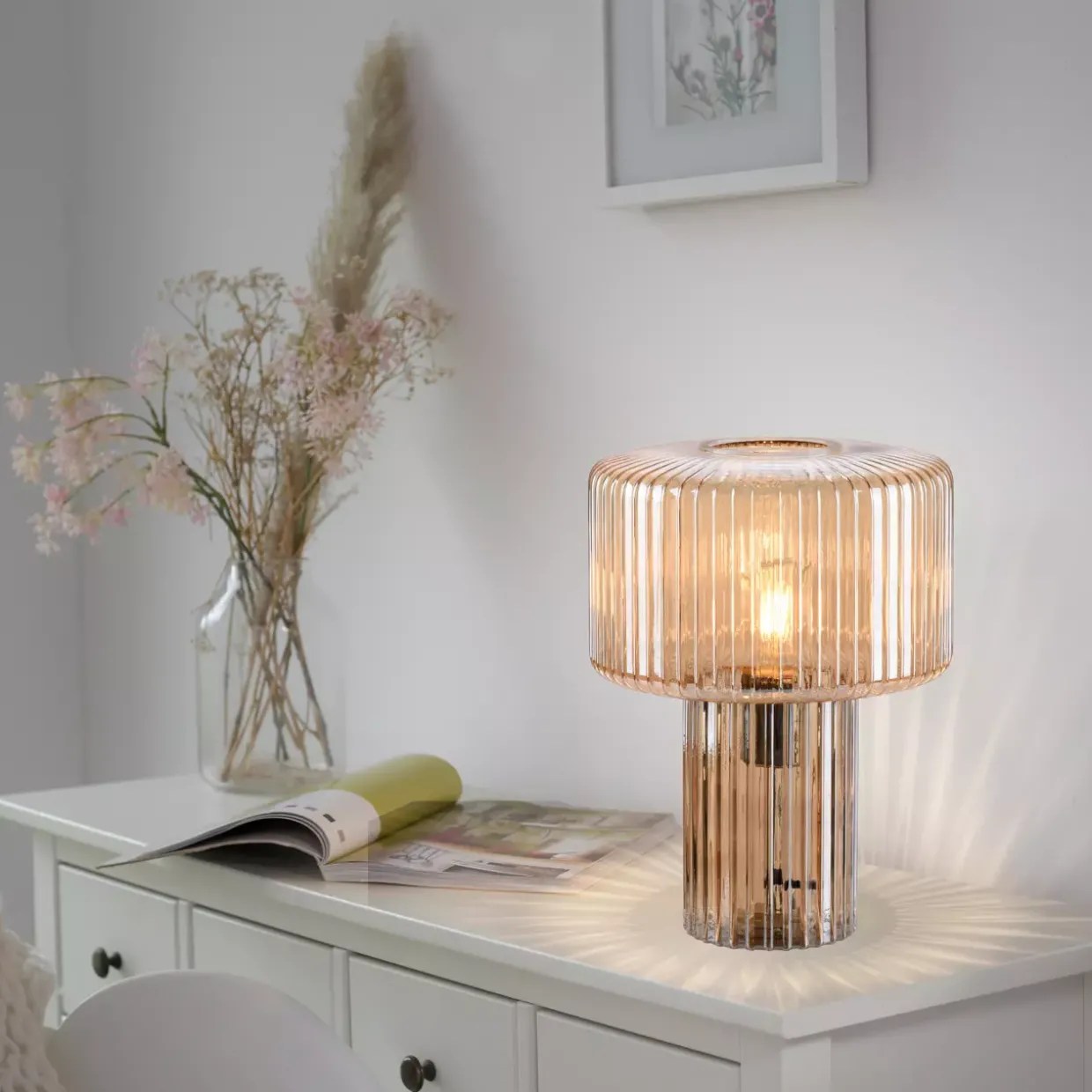 Amberfarbene Eleganz für Ihr Zuhause: Die Tischleuchte Modell Fungus besticht durch ihre moderne Ästhetik und fügt sich nahtlos in zeitgemäße Einrichtungsstile ein. Ihr geschmackvolles Design wird durch die Verwendung von hochwertigem Glas unterstrichen, welches der Leuchte eine erhabene Leichtigkeit verleiht.