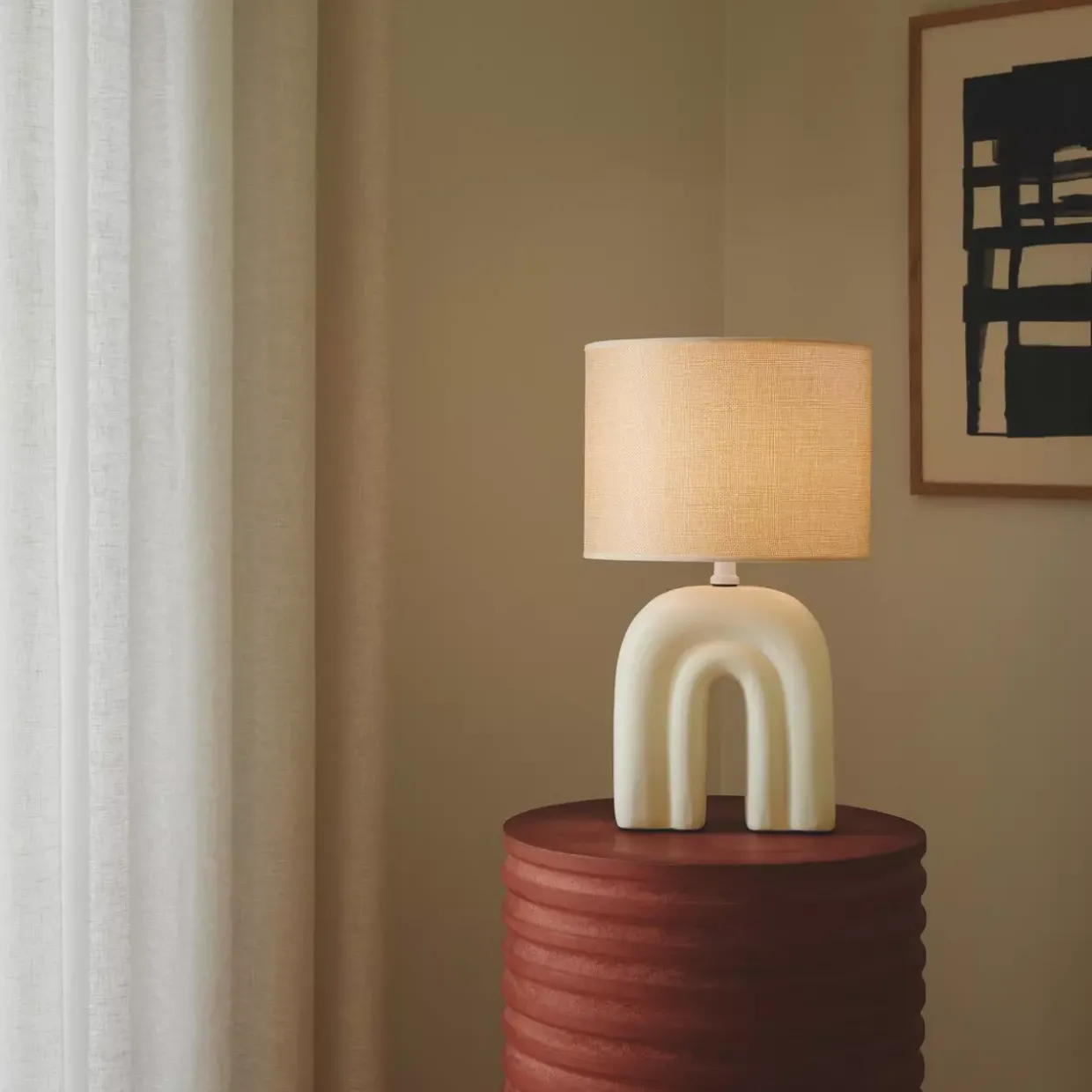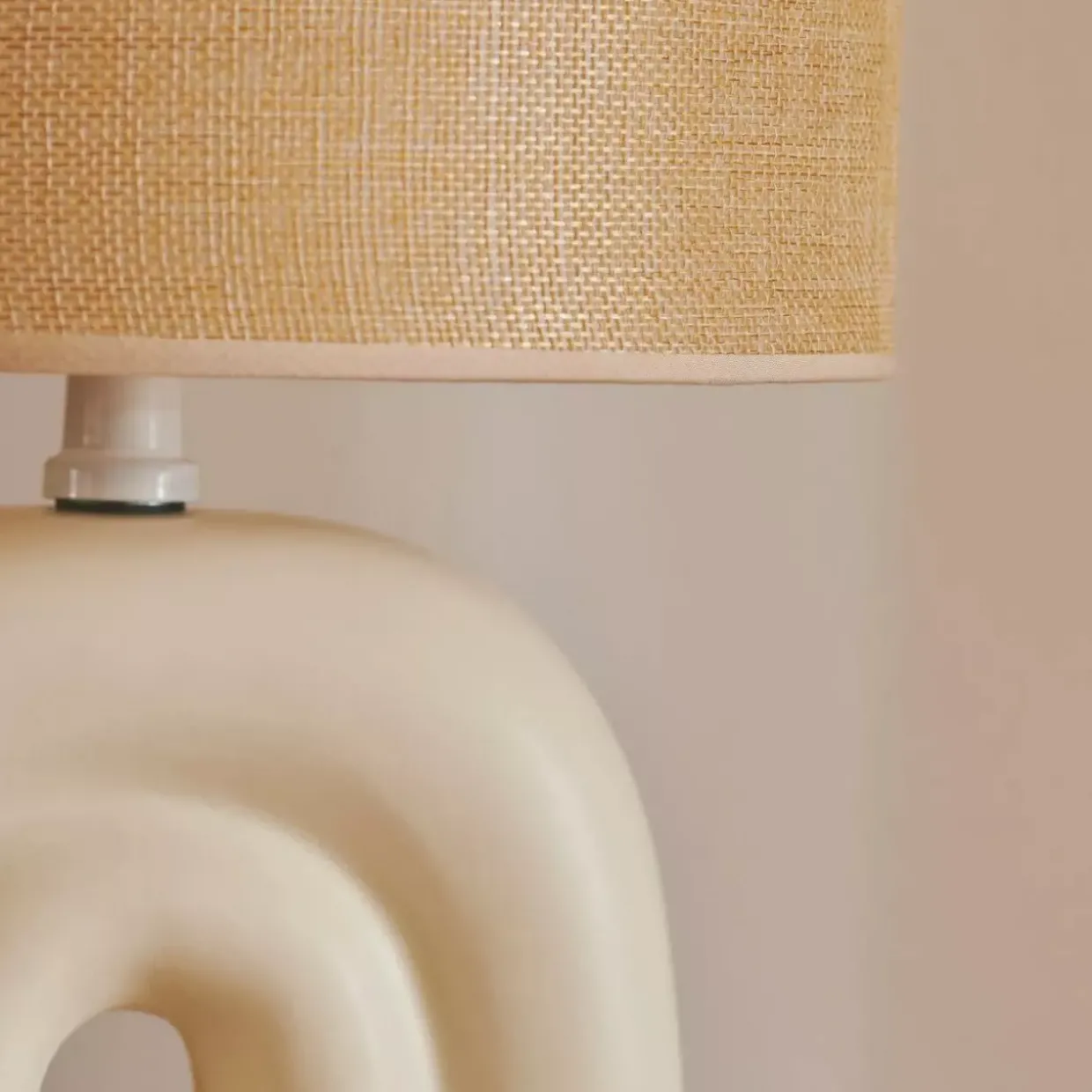 Materialmix: Sockel aus Keramik und Lampenschirm aus Textil