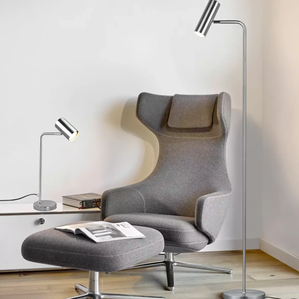 Der minimalistische Einrichtungstrend wird immer beliebter und sorgt für ein beruhigendes und harmonisches Umfeld. Durch die klaren Linien und dem reduzierte Design der Tischleuchte MARLEY, tritt das Licht in den Fokus und spendet stimmungsvolle Lichtakzente. Der Leuchtenkopf ist beweglich und kann frei nach oben und unten ausgerichtet werden. Ob als Leselicht auf dem Schreibtisch oder als Akzentlicht auf der Kommode, die Tischleuchte setzt besondere Plätze optimale in Szene. Die dezente Farbegestaltung in Nickel matt unterstreicht einen schlichten Einrichtungstrend und lässt sich vielseitig kombinieren. Für eine energiesparende Beleuchtung empfiehlt sich die Verwendung eines LED Leuchtmittels. Diese sind eine optimale Alternative zu herkömmlichen Halogen Leuchtmitteln und stehen für eine hohe Lichtqualität und eine Energieeinsparung von bis zu 80%. Zusätzlich profitieren Sie bei LED Leuchtmitteln von einer langen Lebensdauer, einer geringen Wärmeentwicklung und schonen gleichzeitig die Umwelt.