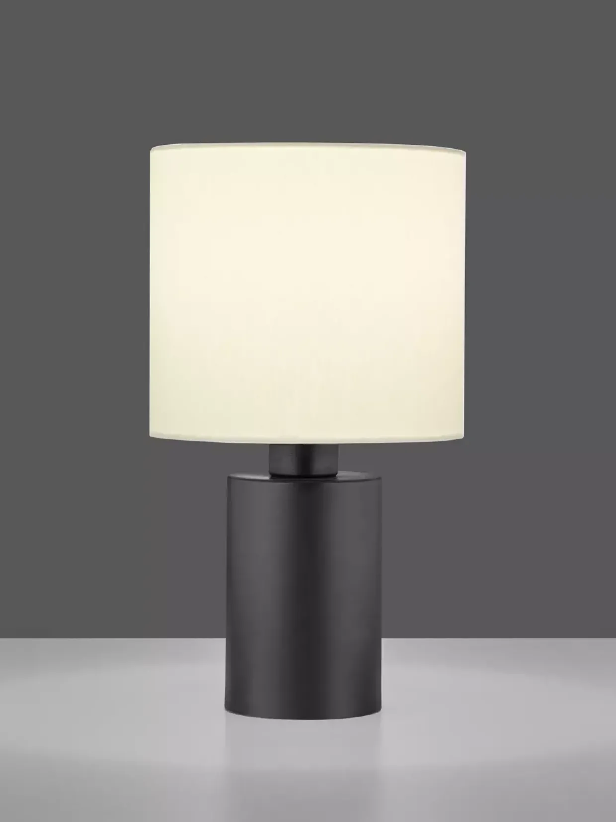 Metallfuß: schwarz gebürstet; Stoffschirm: weiß; Fassung E27, Leuchtmittel 1*25W (exkl.); Lampenshirm: D20*H18cm; Metallfuß: D8*H13cm; schwarzes PVC Kabel (150cm) mit Kabelschalter
