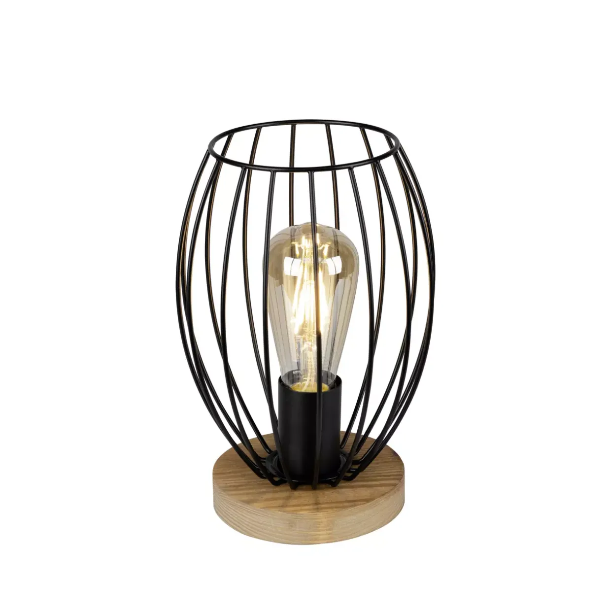 Tischleuchte 1xE27 max. 25 WLoft-Stil trifft auf Funktionalität in der Tischleuchte Trabo. Die harmonische Kombination aus gebeiztem Kiefernholz und schwarzem Metall verleiht ihr eine zeitlose Eleganz. Trotz des robusten Materials wirkt die Leuchte dank ihrer filigranen Verarbeitung und des edlen Oberflächenfinishs leicht und unaufdringlich.Ihre Form und Farbgebung machen Trabo zu einem vielseitigen Begleiter in jeder Einrichtung, sei es im Wohnzimmer, Schlafzimmer oder Büro. Der warme Kiefer Braun Ton sorgt für eine behagliche Atmosphäre, während das schwarze Metall einen modernen Akzent setzt. Mit einem Durchmesser von 17 cm findet die Leuchte auch auf kleineren Tischen problemlos Platz.Die Fassung E27 bietet Ihnen Flexibilität bei der Wahl des Leuchtmittels, sodass Sie Lichtintensität und Farbtemperatur individuell anpassen können. Beachten Sie, dass die Leuchte nicht dimmbar ist, was jedoch ihre schlichte Eleganz unterstreicht. Die Verwendung von FSC-zertifiziertem Holz garantiert nicht nur Nachhaltigkeit, sondern auch eine hohe Qualität des Materials. Ohne im Lieferumfang enthaltenes Leuchtmittel haben Sie die Freiheit, die für Ihre Bedürfnisse passende Lichtquelle zu wählen. Trabo, die Tischleuchte, fügt sich nahtlos in jede Ganzjahresdekoration ein und verspricht, ein stilvolles Highlight in Ihrem Zuhause zu sein.