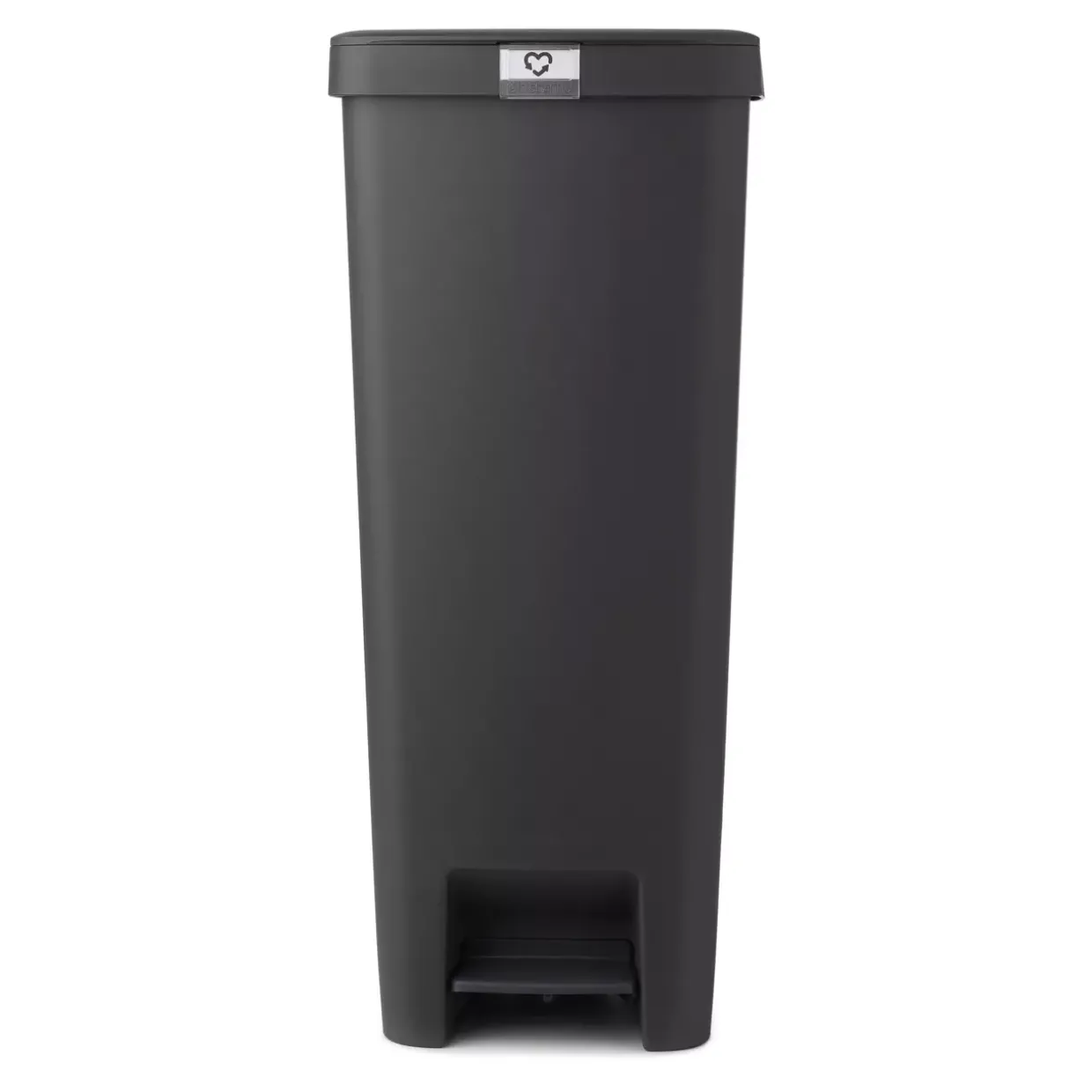 Der moderne Stil des Treteimers StepUp zieht alle Blicke auf sich. Mit seiner eleganten Farbe in Dunkelgrau fügt er sich nahtlos in jede zeitgemäße Einrichtung ein. Gefertigt aus robustem Kunststoff, vereint der Treteimer Langlebigkeit mit einem leichten Gewicht, das den täglichen Gebrauch erleichtert. Die integrierte Metallkomponente aus Stahl sorgt für zusätzliche Stabilität und verleiht dem Design eine hochwertige Note.