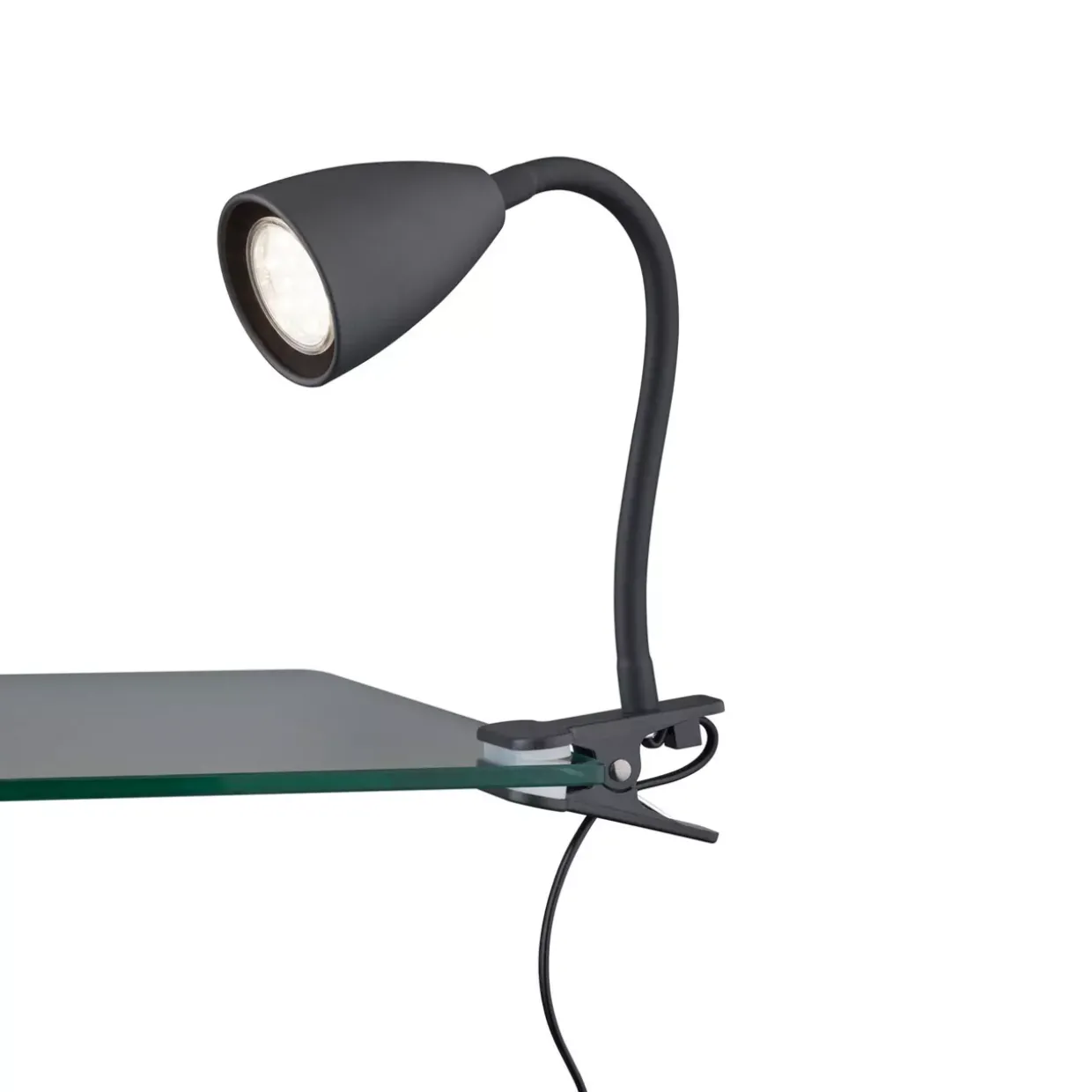 Die Klemmleuchte Wanda präsentiert sich in einem eleganten schwarz matt und ist ein stilvoller Blickfang für jede Umgebung. Gefertigt aus hochwertigem Metall, vereint sie modernes Design mit Funktionalität. Der verstellbare Leuchtenkopf ermöglicht eine flexible Ausrichtung des Lichts, perfekt für unterschiedliche Beleuchtungsbedürfnisse.