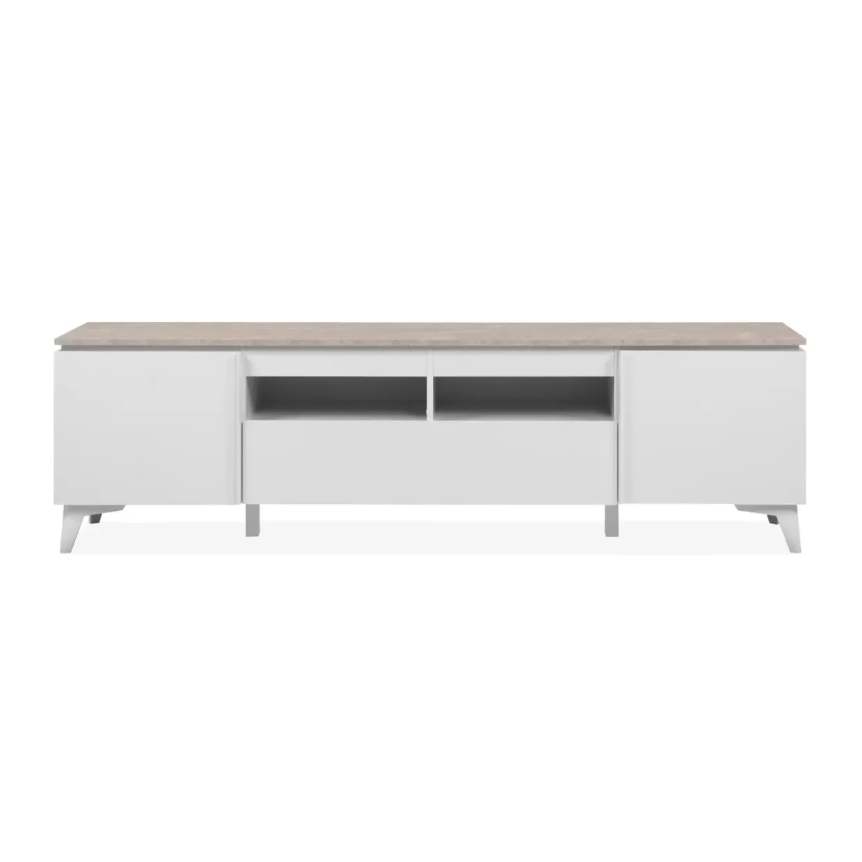 Das Bertrix TV-Board beeindruckt nicht nur durch seine ästhetische Erscheinung, sondern auch durch seine funktionale Vielseitigkeit. Der großzügige Stauraum bietet Platz für all Ihre Mediengeräte und sorgt für eine aufgeräumte Umgebung. Praktische Fächer und Ablagen ermöglichen eine übersichtliche Organisation und schnellen Zugriff auf Ihre Lieblingsunterhaltung.