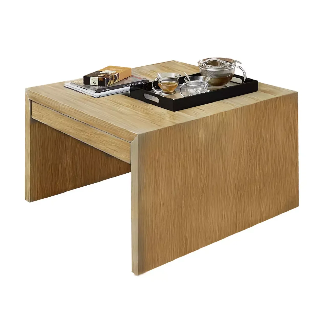Ein besonderes Highlight dieses Beistelltisches ist der praktische Schubkasten. Er schafft zusätzlichen Stauraum für kleine Alltagsgegenstände und sorgt für eine aufgeräumte Optik im Wohnbereich. Der Schubkasten gleitet sanft und bietet ausreichend Platz für alles, was Sie gerne griffbereit haben möchten.