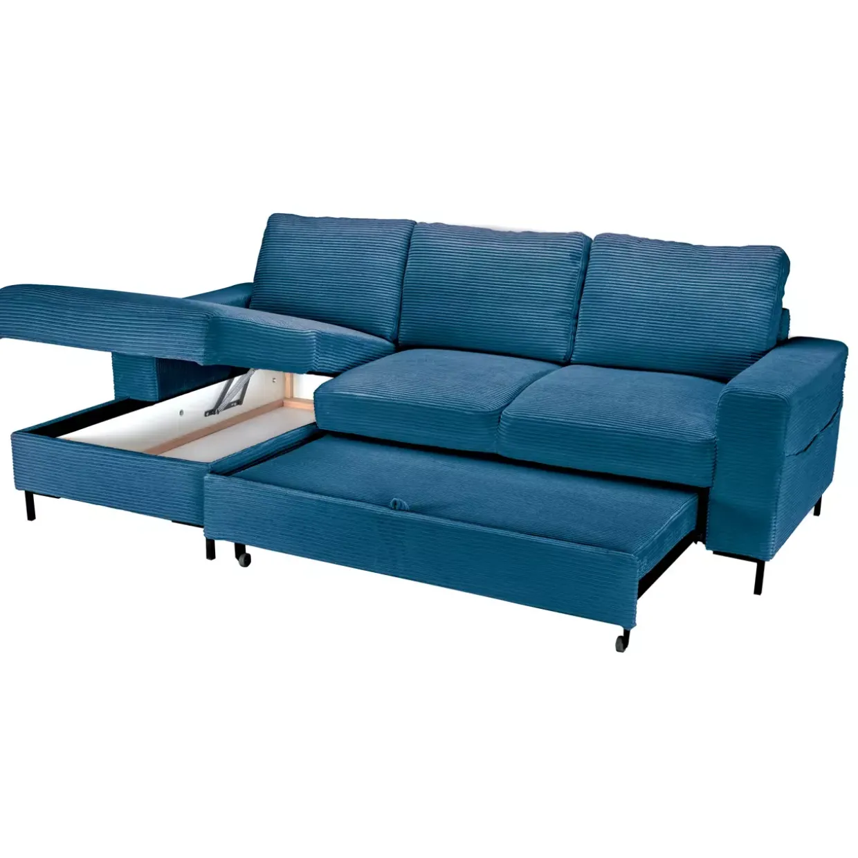 Zusätzlich bietet ein integrierter Bettkasten wertvollen Stauraum, der das Verstauen von Bettwäsche oder anderen Utensilien mühelos ermöglicht. Farblich präsentiert sich die Funktionsecke in elegantem Design, das in nahezu jedes Wohnkonzept harmonisch integriert werden kann. Drei mit Granulat gefüllte Rückenkissen verleihen zusätzlichen Komfort und laden zum Verweilen ein.