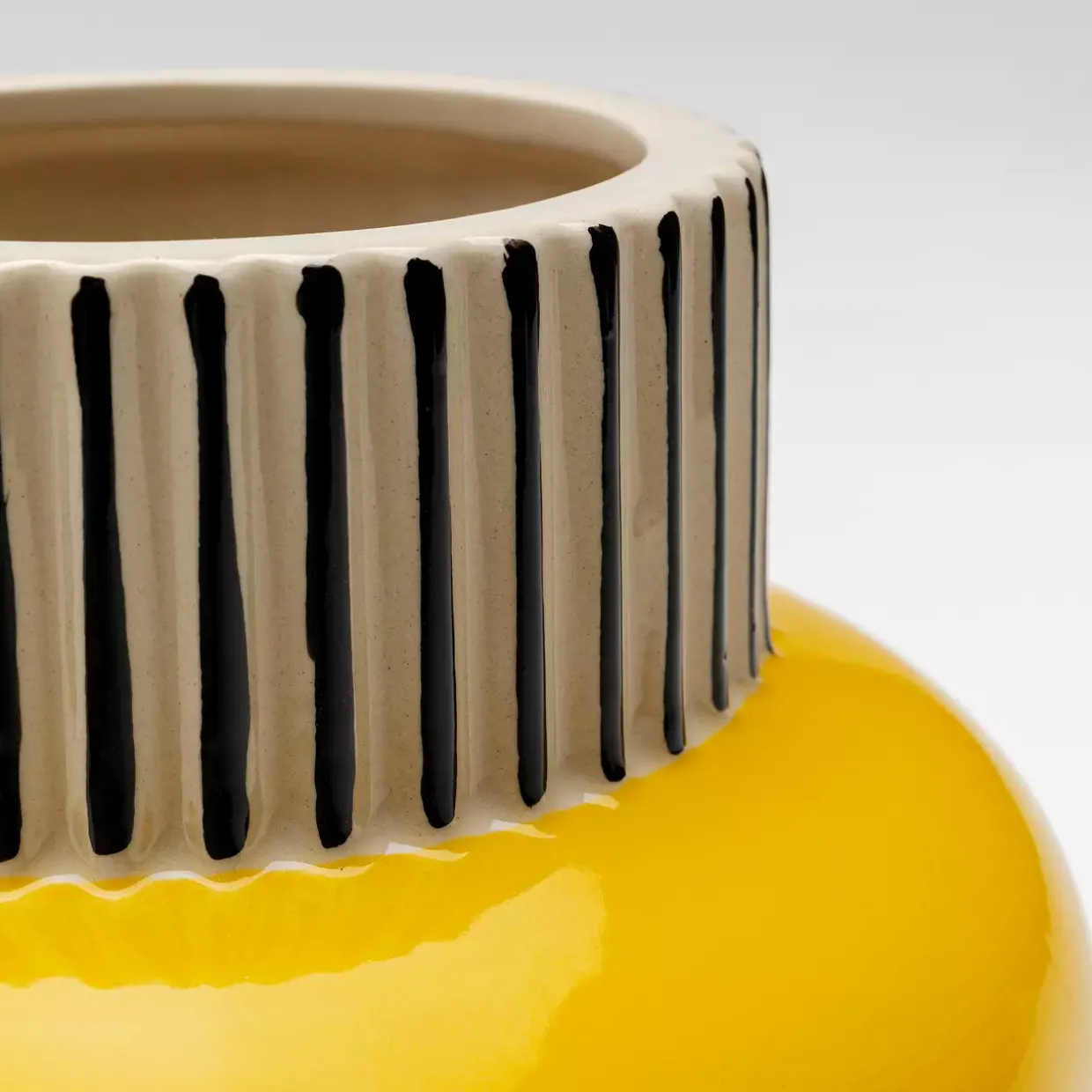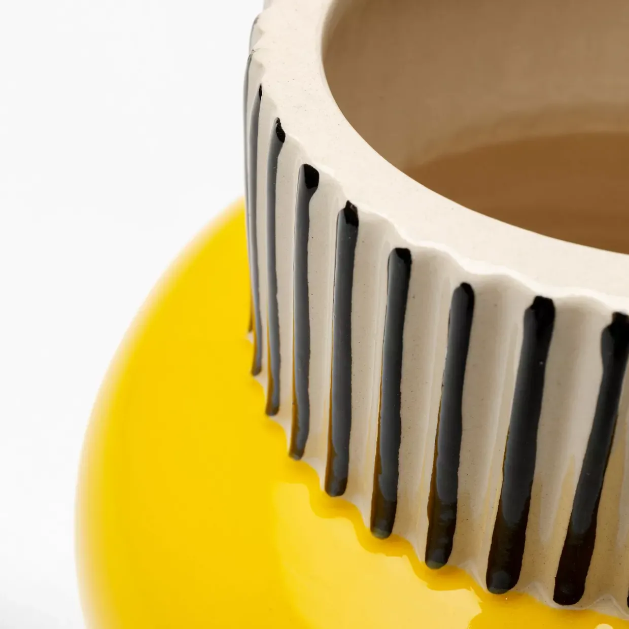 Strahlend in einem warmen Gelbton zieht diese handbemalte Vase alle Blicke auf sich. Die Kombination aus Retro-Stil und hochwertiger Keramik macht sie zu einem zeitlosen Schmuckstück für jedes Interieur. Mit ihrer kunstvollen Gestaltung bringt sie nostalgischen Charme in Ihr Zuhause und verleiht jedem Raum eine besondere Note.Die handwerkliche Verarbeitung ist ein wahrer Genuss für Liebhaber traditioneller Handwerkskunst. Jede Vase ist ein Unikat, das den individuellen Charakter der Handbemalung widerspiegelt. Der Retro-Stil sorgt dafür, dass sie sowohl in modernen als auch in klassischen Einrichtungsstilen harmonisch zur Geltung kommt.Keramik als Material bietet nicht nur eine robuste und langlebige Grundlage, sondern auch eine ästhetische Tiefe, die durch die gelbe Farbe noch verstärkt wird. Diese Vase eignet sich hervorragend als zentrales Dekorationselement auf Tischen, Regalen oder Fensterbänken.Neben ihrer dekorativen Funktion kann sie auch praktisch genutzt werden. Ob mit einem prächtigen Blumenarrangement oder als eigenständiges Kunstobjekt – diese Vase bereichert Ihre Wohnräume auf vielfältige Weise. Lassen Sie sich von der Eleganz und dem Charme dieser Keramikvase inspirieren und schaffen Sie eine Atmosphäre, die sowohl stilvoll als auch einladend wirkt.