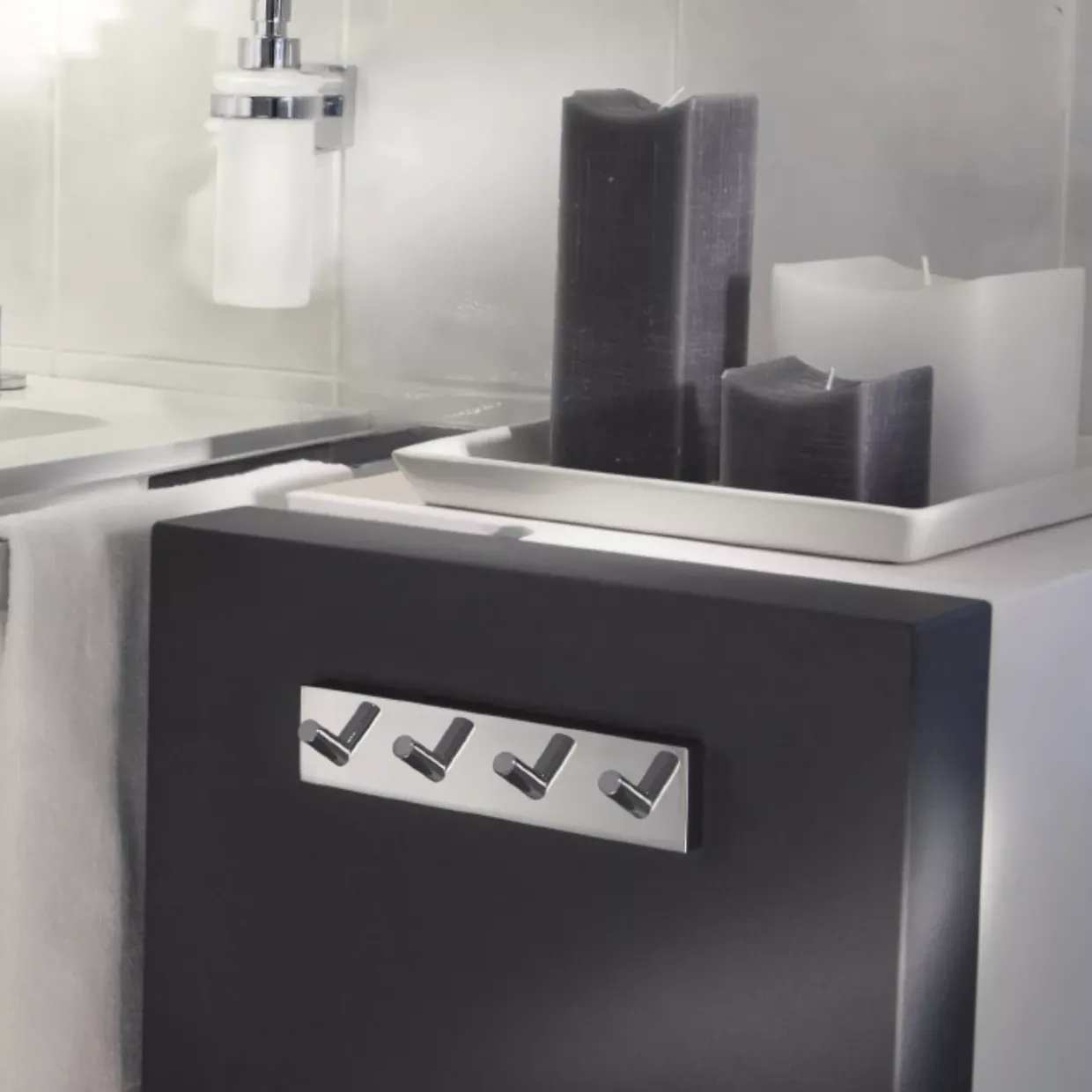 Die durchdachte Konstruktion bietet Platz für vier Haken, die vielfältige Einsatzmöglichkeiten bieten. Ob in der Küche für Handtücher, im Flur für Jacken oder im Badezimmer für Accessoires – die Hakenleiste erweist sich als praktischer Helfer. Ihre Funktionalität wird durch das ansprechende Design ergänzt, das in jedem Raum einen dekorativen Akzent setzt.