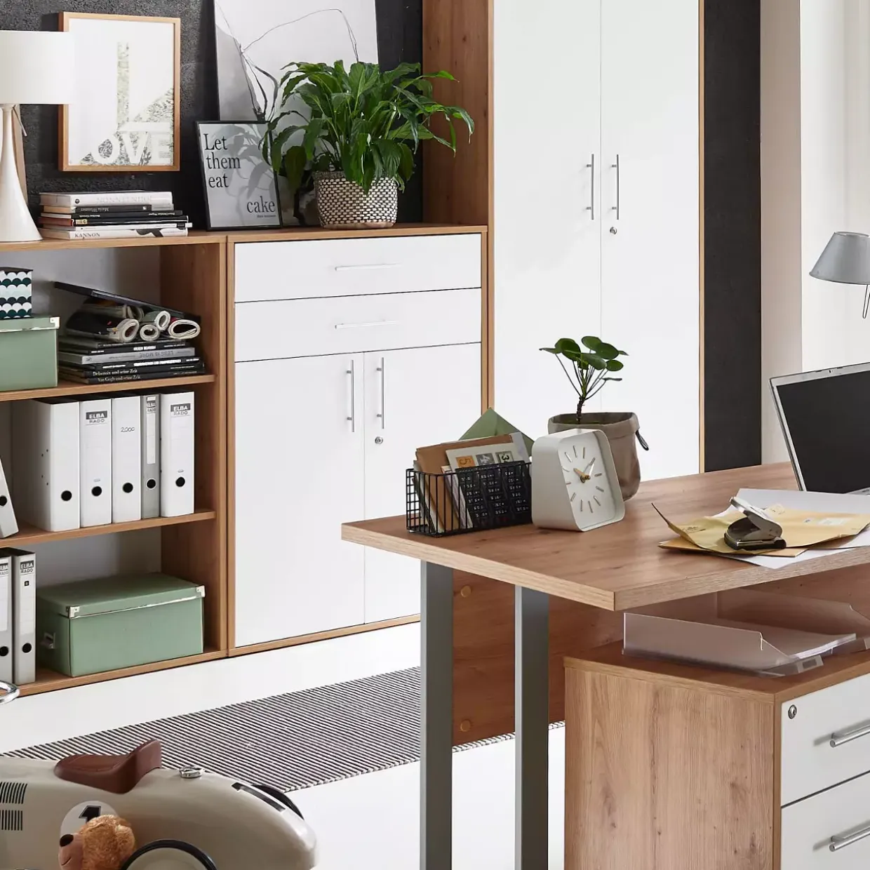 Abschließbare Türen bieten nicht nur Sicherheit, sondern auch ein Gefühl von Ordnung in jedem Büro. Der Aktenschrank im Scandi-Stil verbindet schlichte Eleganz mit funktionaler Praktikabilität. Mit seiner folierten Oberfläche aus Holzwerkstoff fügt er sich harmonisch in moderne Arbeitsumgebungen ein und bietet zugleich Stabilität und Langlebigkeit.