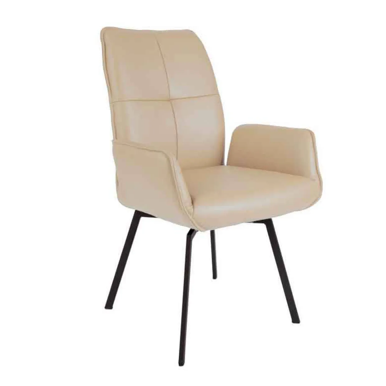 Eingeschäumte Stahlrahmen verleihen dem Bellsize VITO Ergo Stuhl nicht nur Stabilität, sondern auch eine besonders komfortable Sitzfläche. Mit seinen konventionellen Linien und der stilvollen Farbwahl in Soleda Latte und schwarz matt fügt sich dieses Möbelstück nahtlos in jede Umgebung ein. Das Leder-Metall-Material sorgt für eine elegante und zugleich robuste Erscheinung, die sowohl optisch als auch funktional überzeugt.Ein weiteres Highlight ist die 180 Grad drehbare Funktion, die Flexibilität und Bewegungsfreiheit ermöglicht. Dabei sorgt die raffinierte Swivel-Drehfunktion mit Auto-Rückstellung für ein müheloses Zurückkehren in die Ausgangsposition. Die Rückenlehne, durch einen Stahlrahmen mit Schaumauflage verstärkt, bietet optimalen Halt und Komfort für längere Sitzphasen. Die matte Oberfläche fügt eine dezente Note hinzu, die die elegante Ausstrahlung des Stuhls unterstreicht.Dieser Stuhl ist mehr als nur ein Sitzmöbel; er ist eine Einladung zum Sitzen, Arbeiten und Verweilen, egal ob im Büro oder zu Hause. Die durchdachte Kombination aus Material und Funktionalität macht ihn zu einem idealen Begleiter für jene, die Wert auf Qualität und Design legen. Erleben Sie den Unterschied, den durchdachte Ergonomie und hochwertige Materialien bieten können.