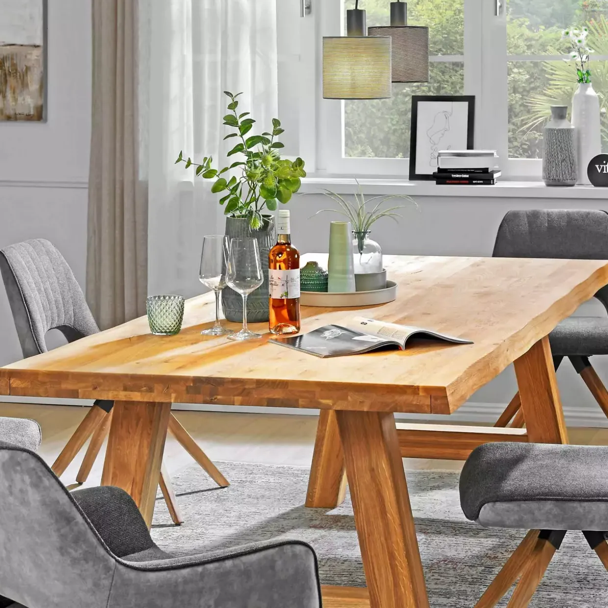 Baumkante Größe: 200x100cm Farbton: Eiche-geölt Muster und Motiv: durchg. Lamelle Material: Holz Stil: Natur Holzart: Eiche bestehend aus: 1 Tischplatte Materialstärke: Kantenstärke 6cm Oberfläche: geölt Highlights