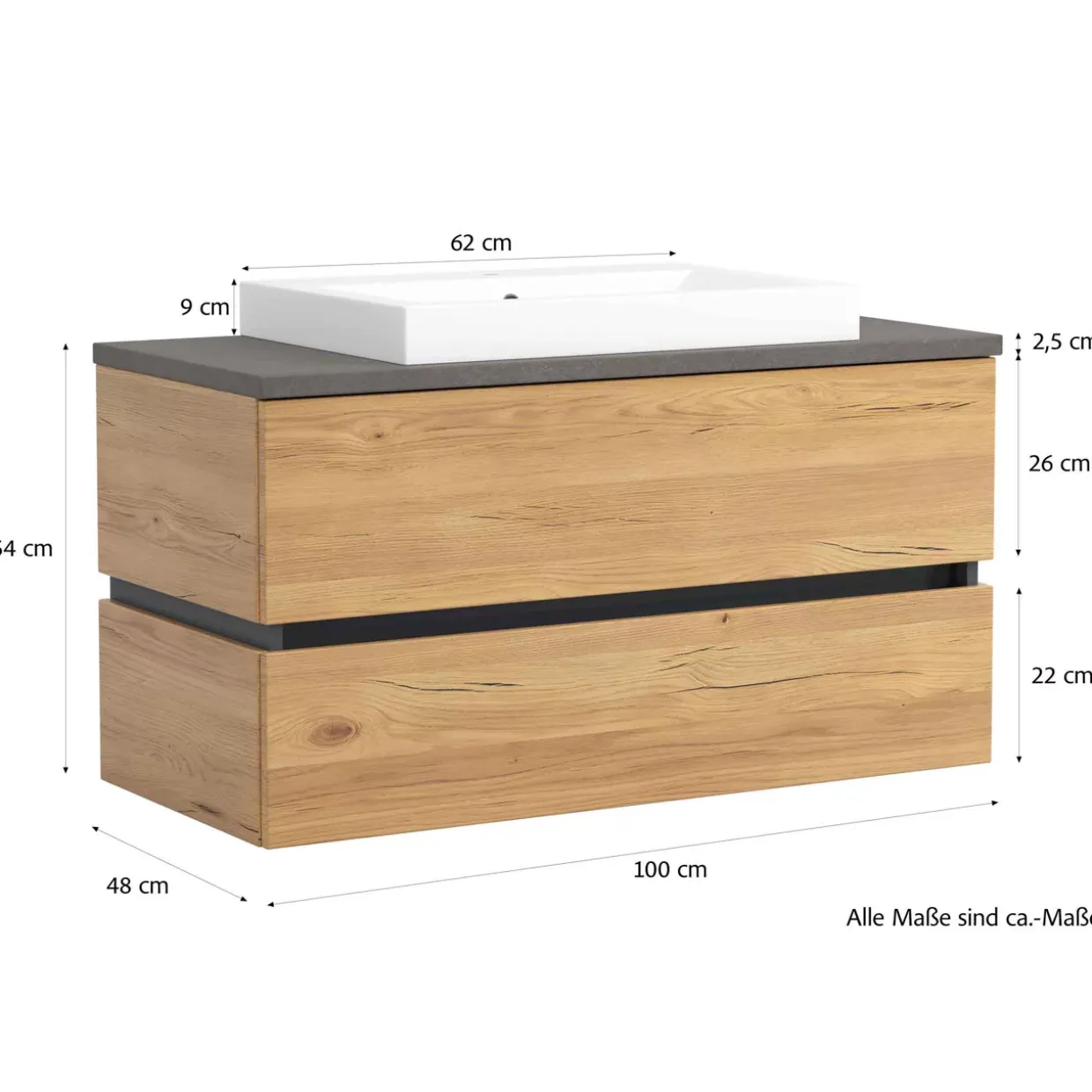 Farbton: Abdeckplatte Steinoptik grau / Eiche Gustavson Nachbildung / Keramik weiß