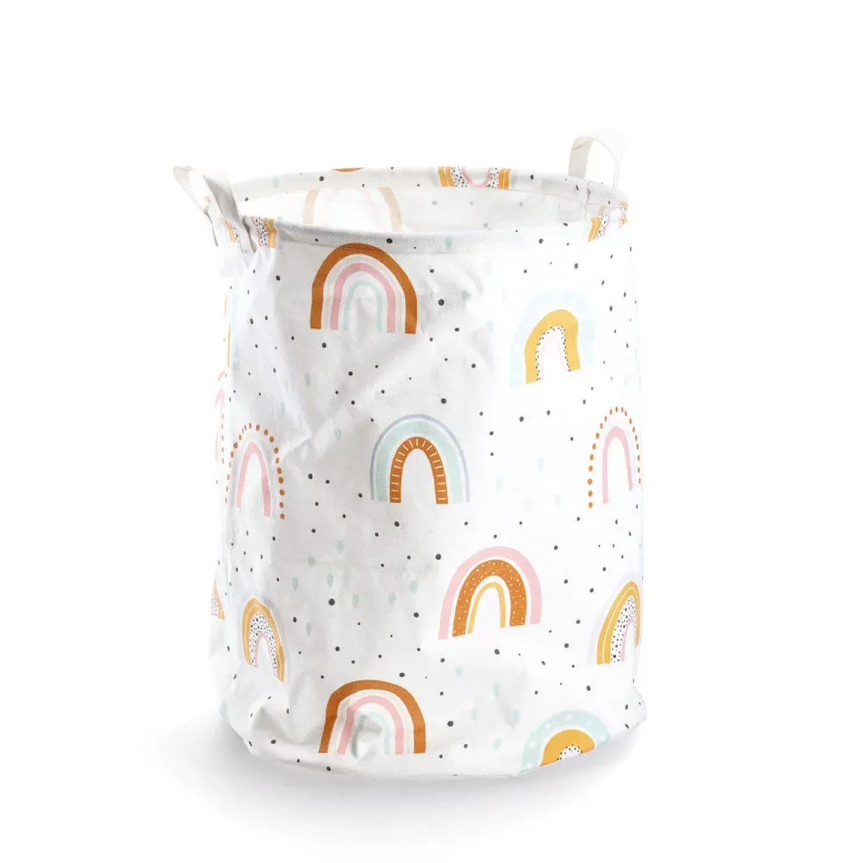 Der Durchmesser von 38 cm bietet ausreichend Platz, um die schmutzige Wäsche der Kleinsten bis zum nächsten Waschtag stilvoll aufzubewahren. Dank der beschichteten Innenseite gestaltet sich die Reinigung des Wäschekorbs unkompliziert und effizient. Kinderfreundliche Motive wie das süße Regenbogen-Design oder der Dino-Druck machen das Ordnung halten auch für die Jüngsten zu einem freudigen Erlebnis.