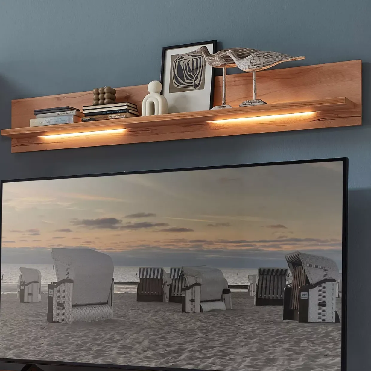 Balkenbuche Nachbildung bringt natürliche Wärme in Ihre Wohnräume. Mit dem konventionellen Stil des Wandboards Sellin PAZ.150 schaffen Sie eine harmonische Atmosphäre, die sowohl zeitlos als auch elegant wirkt. Die Verwendung von Holzwerkstoff als Material gewährleistet Stabilität und Langlebigkeit, während die melaminharzbeschichtete Oberfläche des Wandboards für eine pflegeleichte und strapazierfähige Nutzung sorgt.Vielseitig einsetzbar, fügt sich dieses Wandboard nahtlos in verschiedene Wohnkonzepte ein, sei es im Wohnzimmer, Schlafzimmer oder Home Office. Es bietet eine ideale Plattform, um dekorative Elemente, Bücher oder persönliche Erinnerungsstücke stilvoll in Szene zu setzen. Die warme Farbgebung in Balkenbuche Nachbildung harmoniert hervorragend mit anderen Holzmöbeln und unterstreicht ein natürliches Wohnambiente.Durch die robuste Bauweise und die hochwertige Beschichtung bleibt das Wandboard über Jahre hinweg attraktiv und funktional. Das Design vereint ästhetische Ansprüche mit praktischer Anwendung, was es zu einer wertvollen Ergänzung für Ihr Zuhause macht. Entdecken Sie die Möglichkeiten, die dieses Wandboard bietet, und bereichern Sie Ihre Einrichtung mit einem Möbelstück, das sowohl durch seine Optik als auch durch seine Funktionalität besticht.