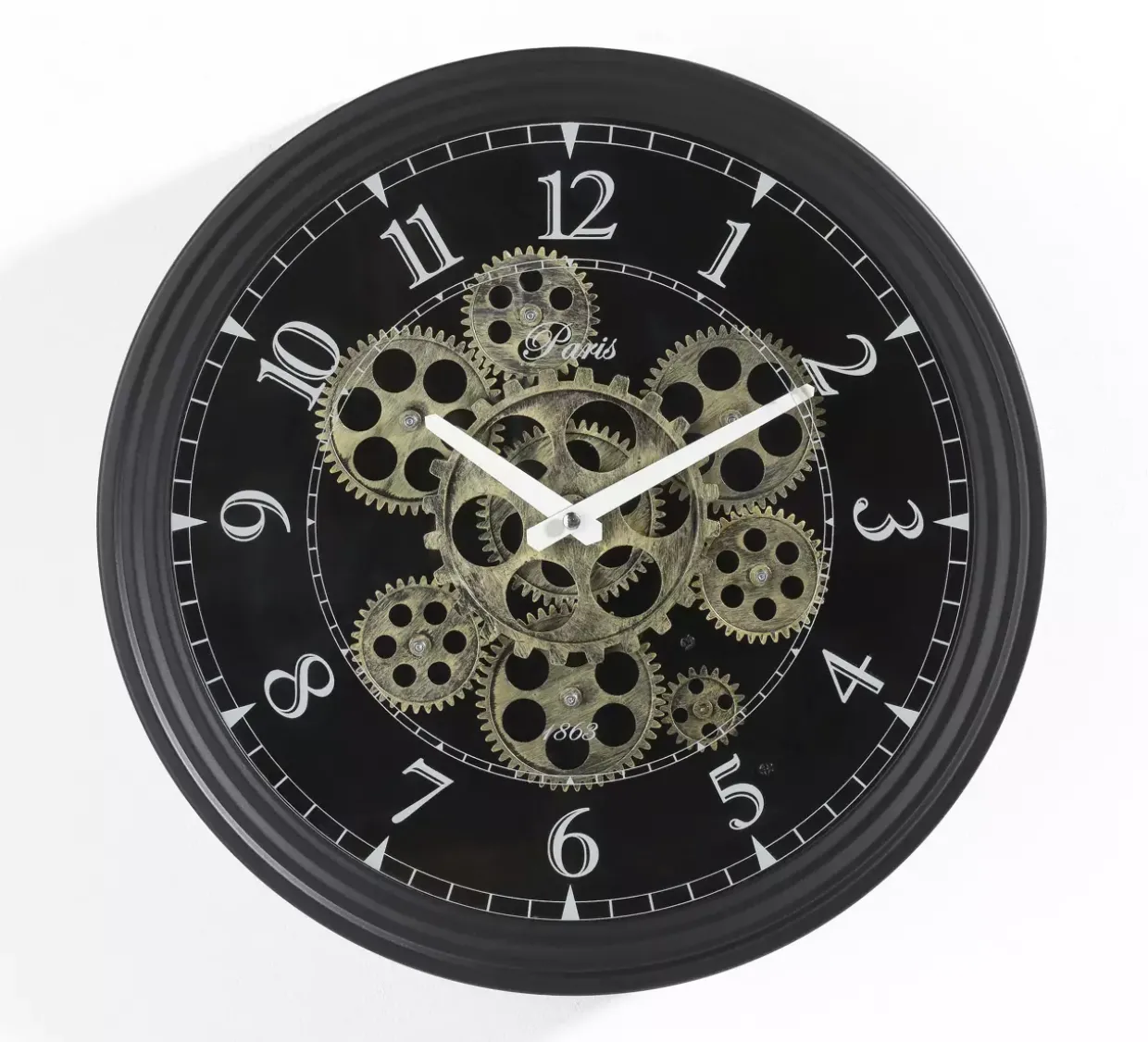 bestehend aus: 1 Wanduhr schwarz mit Zahnrädern ohne Batterien