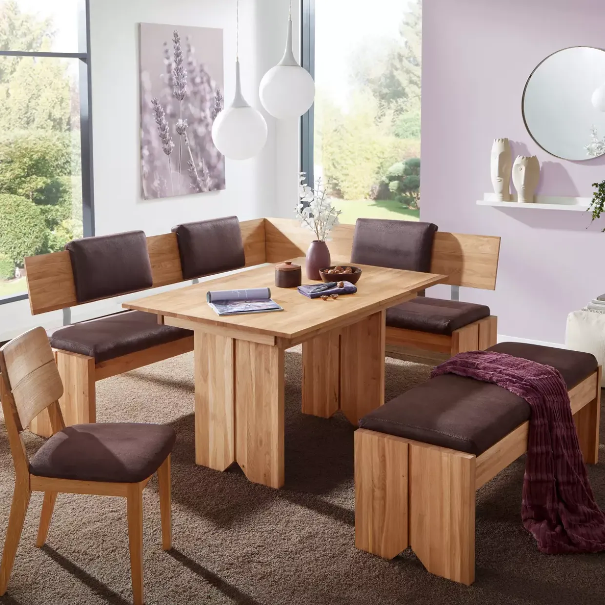 Zeitloses Design trifft auf Funktionalität. Der Ruva VITO Wangentisch punktet mit seiner modernen, rechteckigen Form und passt sich nahtlos in unterschiedlichste Einrichtungsstile ein. Die warme Ausstrahlung von Wildeiche massiv, kombiniert mit der Option einer keilverzinkten Oberfläche, verleiht dem Tisch einen natürlichen und dennoch edlen Look.