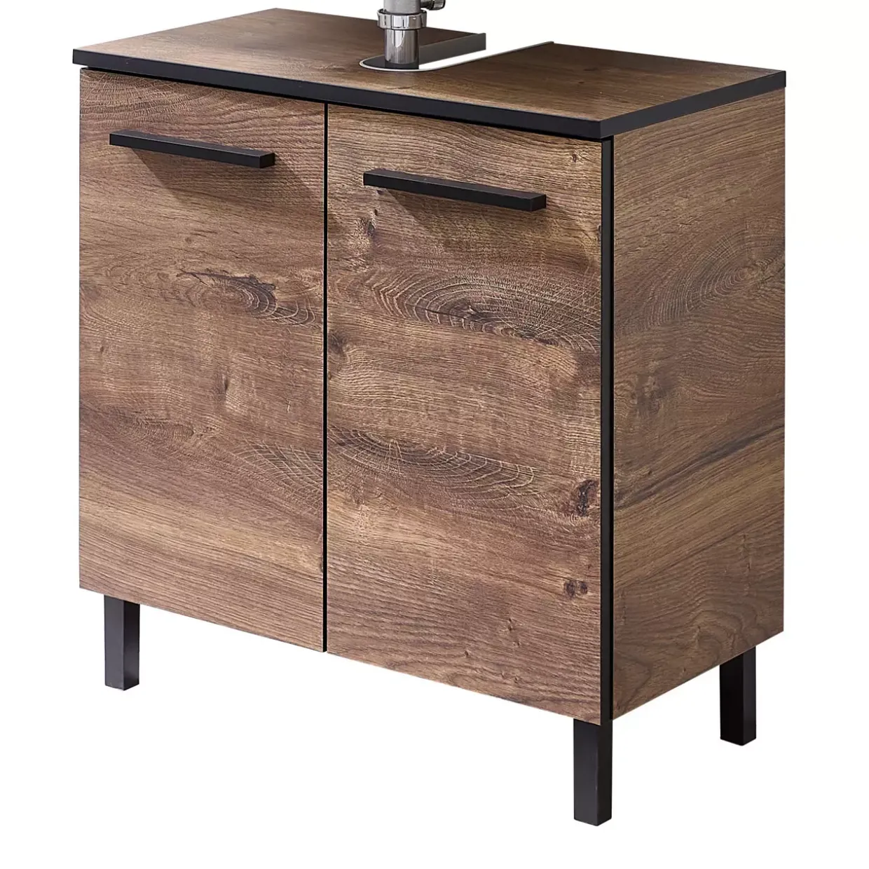 Ein stilvolles Zuhause beginnt mit Details. Der Waschbeckenunterschrank Quickset 374 besticht durch sein konventionelles Design und die ansprechende Farbkombination aus Eiche Ribbeck quer Nachbildung mit schwarzer Kante. Gefertigt aus robustem Holzwerkstoff, bietet dieser Unterschrank sowohl Langlebigkeit als auch Eleganz.