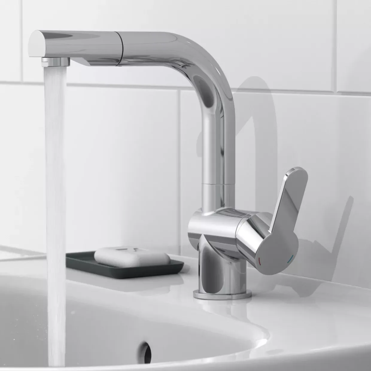Die herausziehbare Haarbrause der Waschtischarmatur London ermöglicht ein flexibles und komfortables Nutzungserlebnis. Mit einem schwenkbaren Auslauf ausgestattet, bietet dieses moderne Modell aus hochwertigem Metall eine elegante Lösung für Ihr Badezimmer. Der zeitgemäße Chrom-Look fügt sich nahtlos in verschiedenste Einrichtungsstile ein und verleiht Ihrem Waschbereich einen Hauch von Raffinesse.
