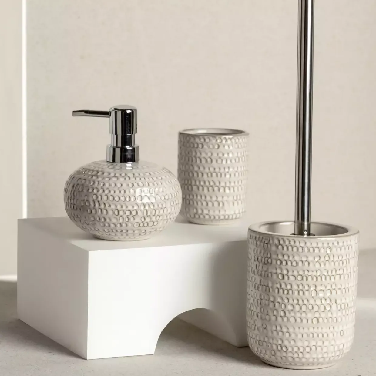 Mit einem Durchmesser von 10,5 cm ist die WC-Bürstengarnitur kompakt und dennoch funktional gestaltet, um den täglichen Anforderungen gerecht zu werden. Die cremige Farbe harmoniert perfekt mit der glänzenden Oberfläche und bringt einen Hauch von Eleganz in Ihr Badezimmer. Praktisch und zugleich ästhetisch, erfüllt dieses Accessoire nicht nur seine Funktion, sondern setzt auch stilvolle Akzente.