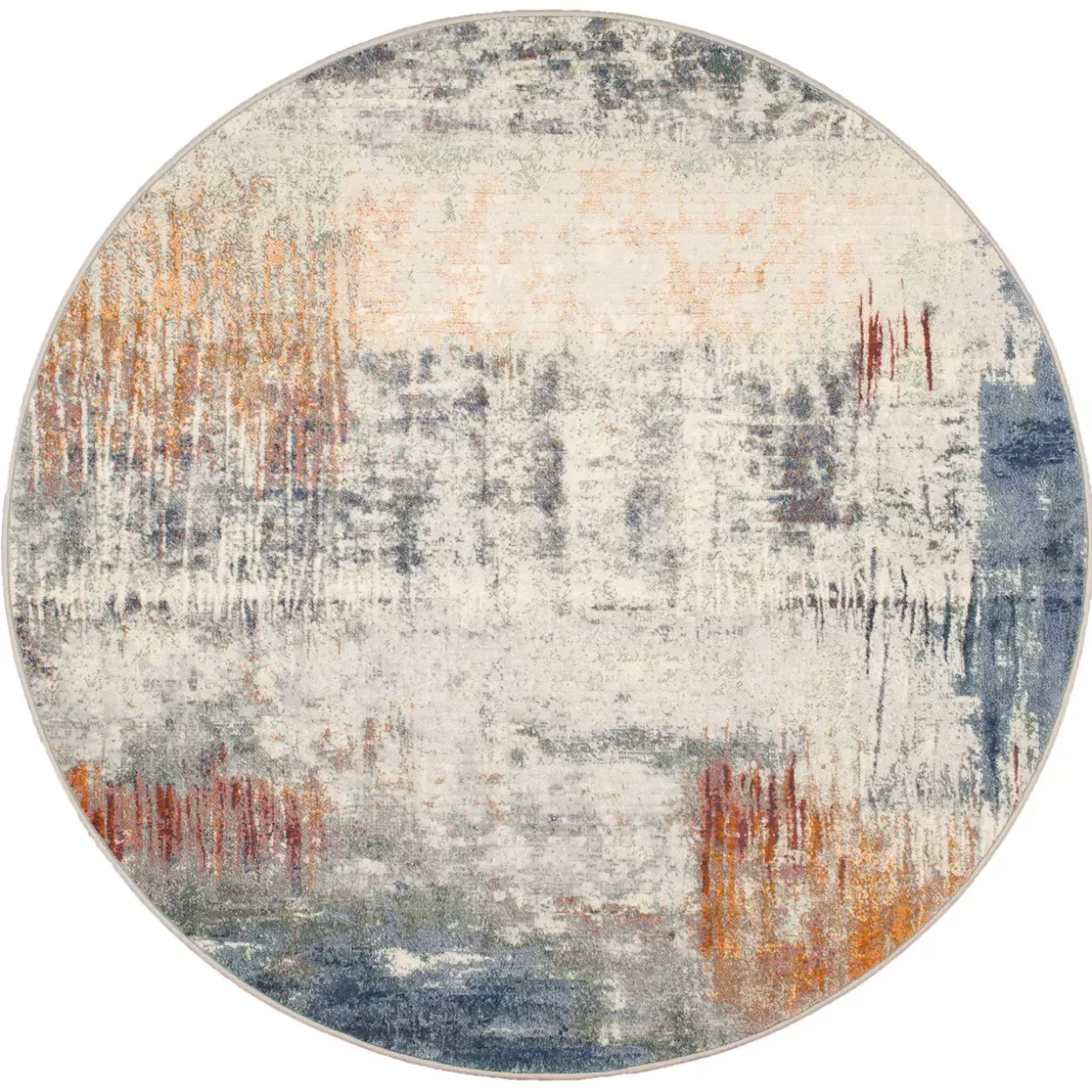 Ein abstraktes Muster in Blau-Weiß-Grau verleiht dem Webteppich Moondance eine moderne und stilvolle Ausstrahlung. Rund und elegant mit einem Durchmesser von 120 cm, fügt er sich harmonisch in jedes Raumkonzept ein. Die Verwendung von Synthetikfasern macht diesen Teppich nicht nur pflegeleicht, sondern auch ideal für Allergiker.